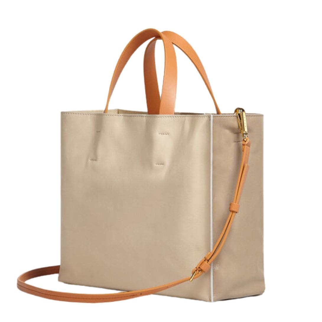 The Museo Soft Bag EW in grey, green, and beige leather stands out for its thoughtful design features. Marni has included sturdy handles and a detachable shoulder strap, providing versatility in how you carry it. Whether you prefer to hand-carry it for a more polished look or sling it over your shoulder for hands-free convenience, this bag adapts effortlessly to your needs. The interior compartments are well-organized, allowing you to keep your belongings in order and easily accessible.