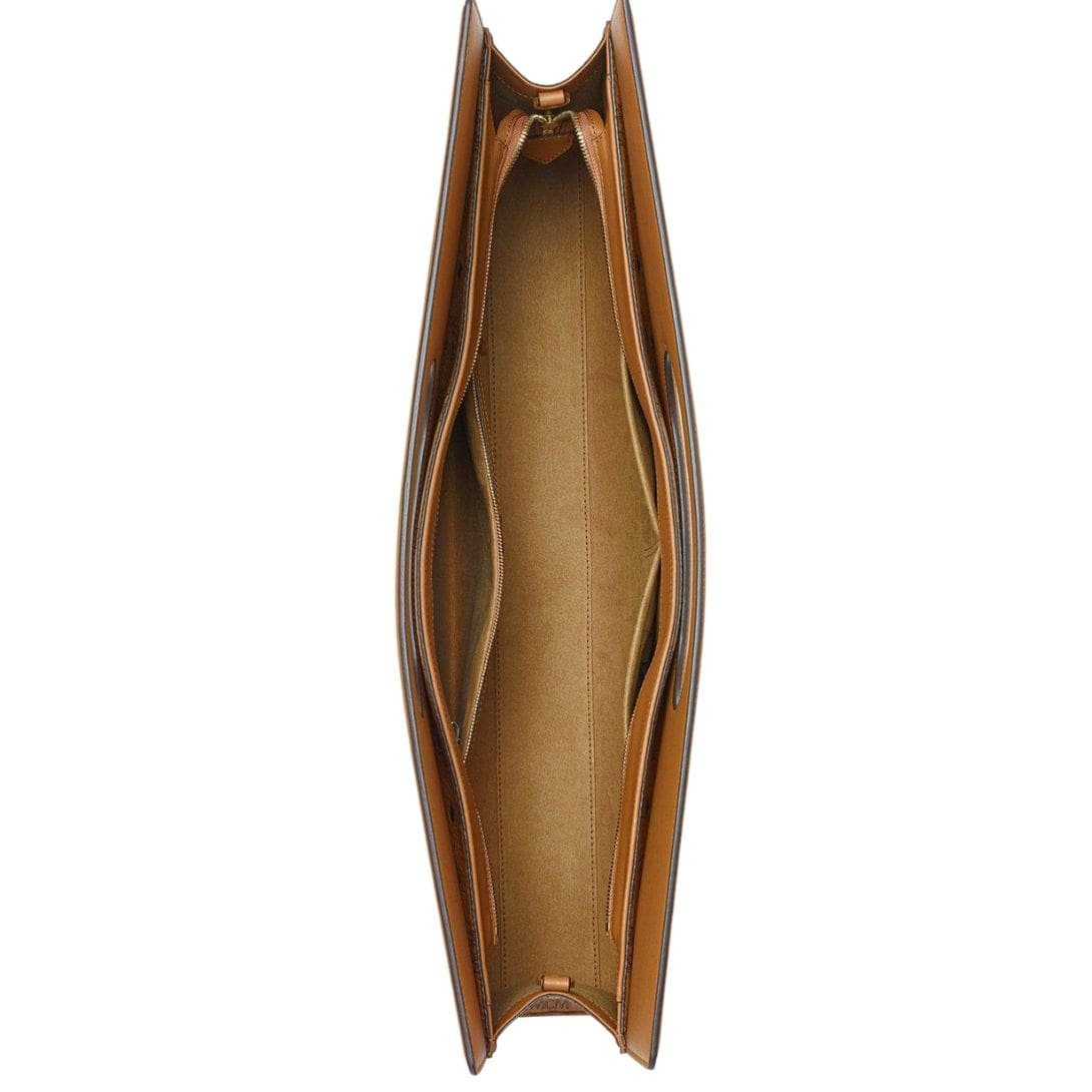 Practicality meets refinement with features like the zip closure, interior slip pocket, and zip pocket, allowing for convenient organization of your belongings. Trimmed with luxurious calf nappa leather and embellished with 24k gold-plated brass hardware, every detail speaks of opulence and craftsmanship.