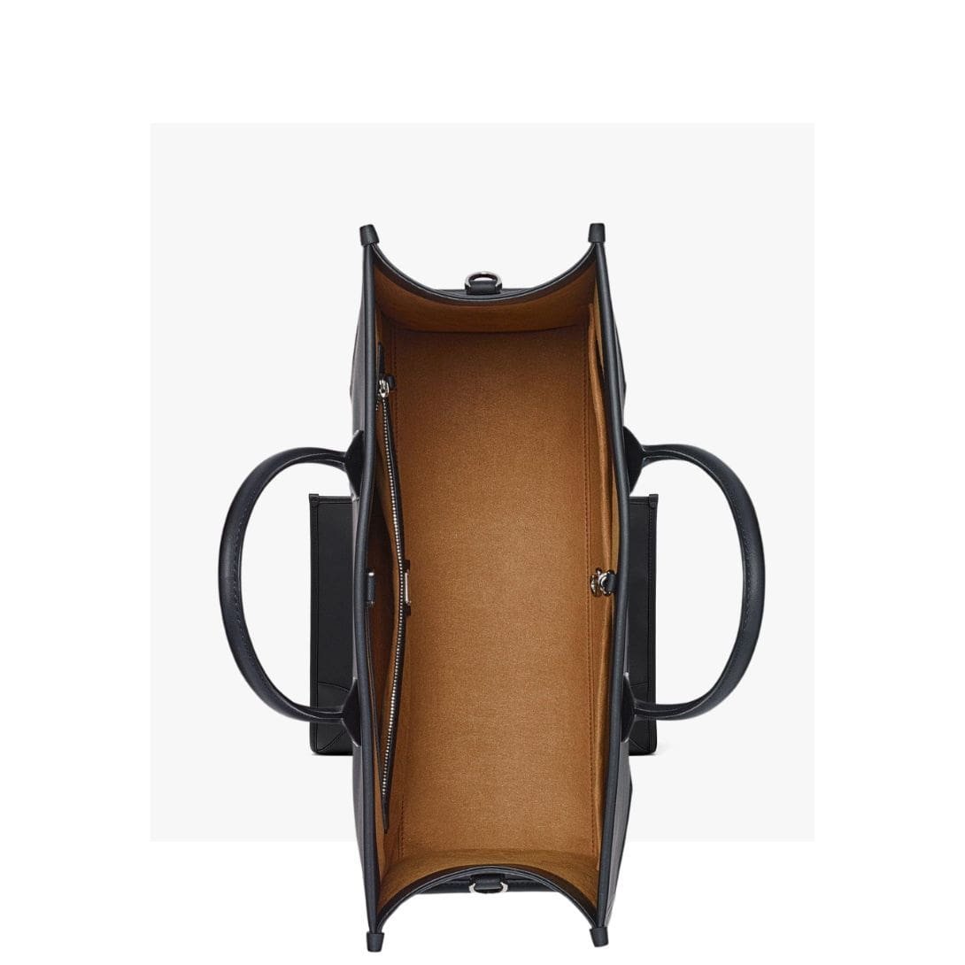Carry options abound with this versatile tote. Opt for the supple leather top handles for a classic and sophisticated look, or attach the logo-woven webbing shoulder strap for hands-free convenience. The adjustable and removable crossbody strap adds a touch of versatility, allowing you to customize your carrying experience according to your needs and preferences.