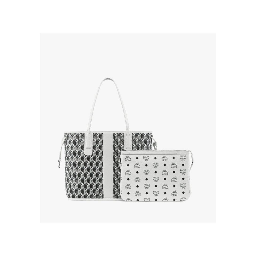 MCM MEDIUM REVERSIBLE LIZ SHOPPER IN VISETOS WHITE