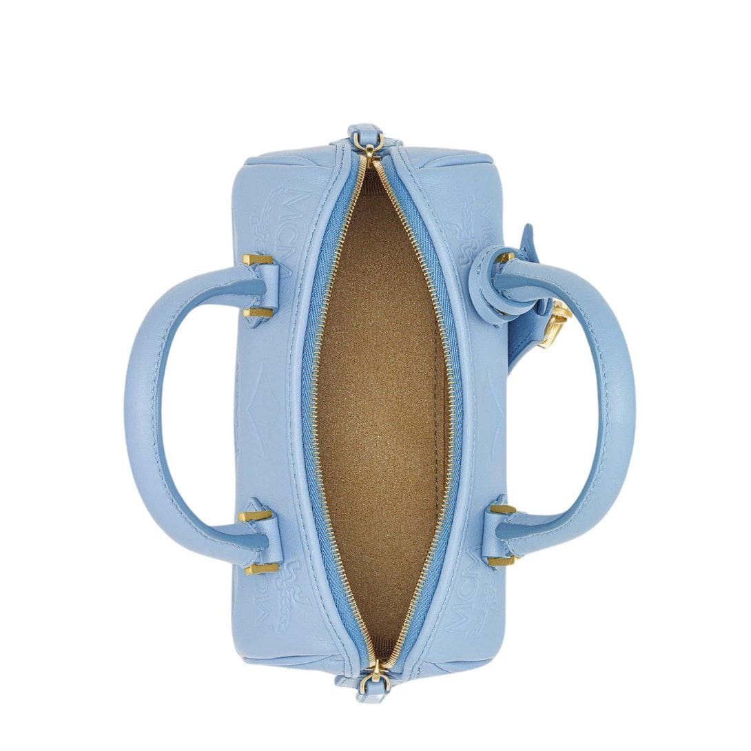 MCM SMALL ELLA BOSTON BAG IN MAXI MONOGRAM LEATHER BLUE