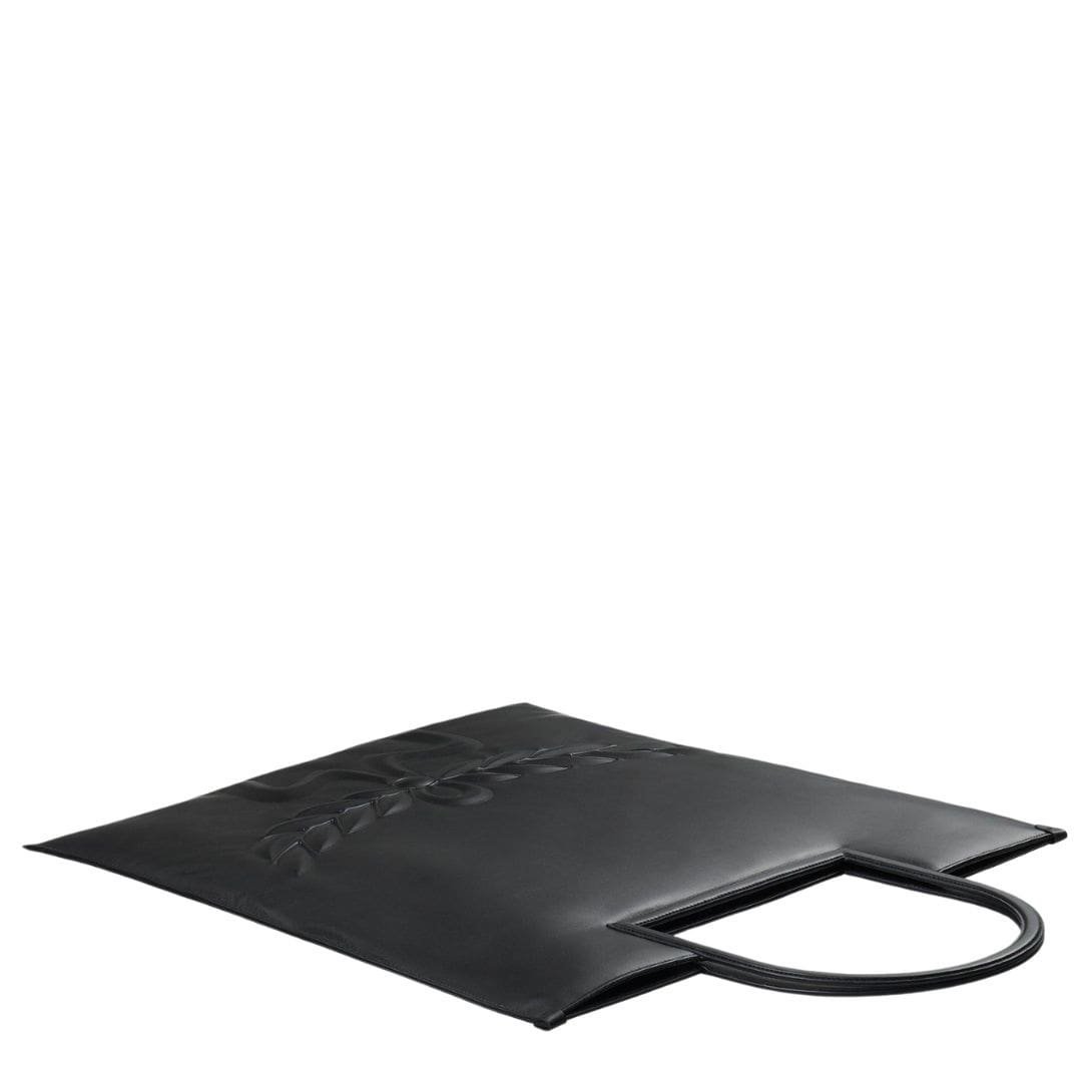 Embrace a symbol of victory and prestige with the MCM X-Large Aren Fold Tote In Mega Laurel Leather Black, where the timeless laurel motif adorns the front of this spacious bag, crafted from natural German leather. Evoking a sense of heritage and tradition, this tote embodies the essence of luxury.