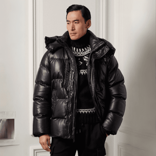 Men Leather Puffer Jacket