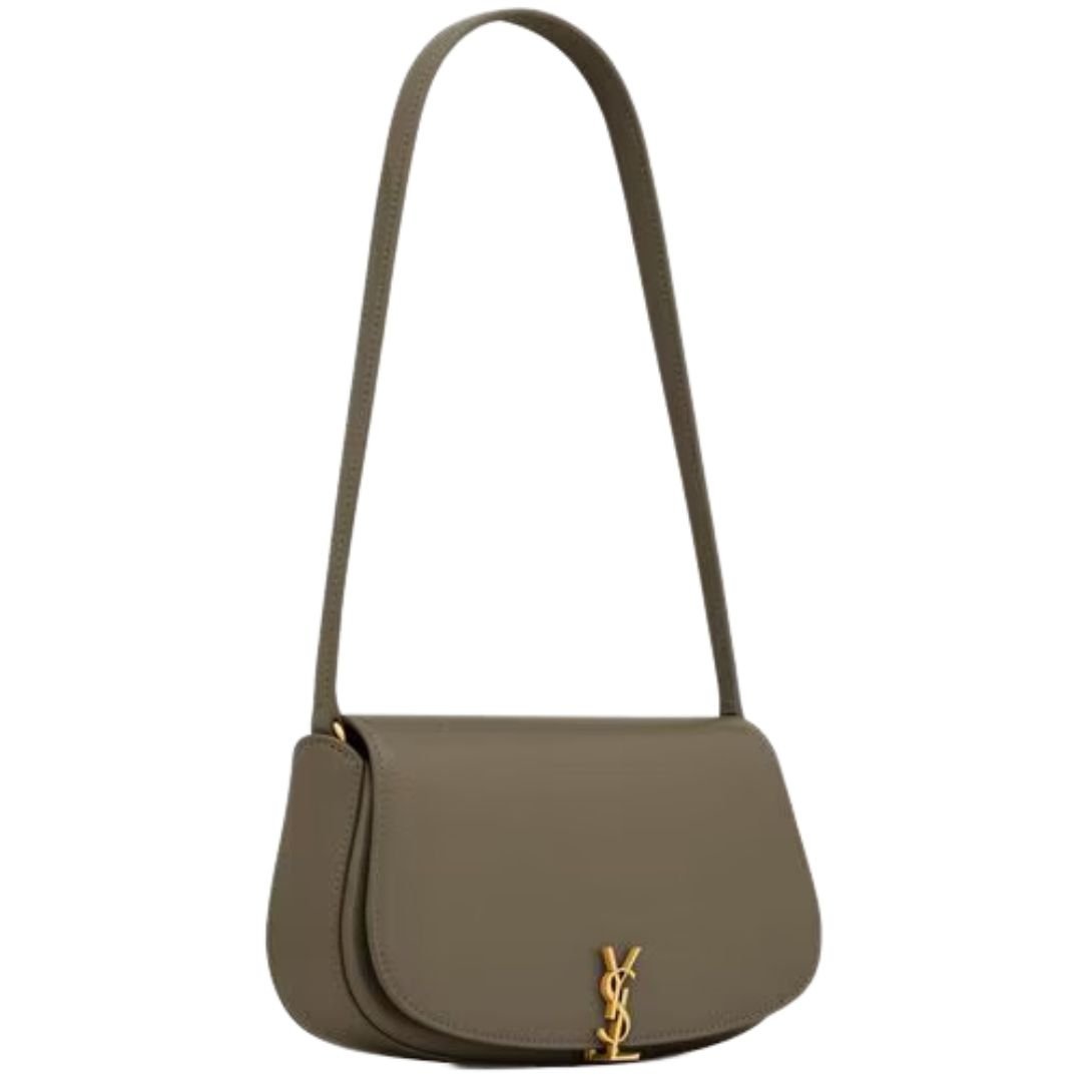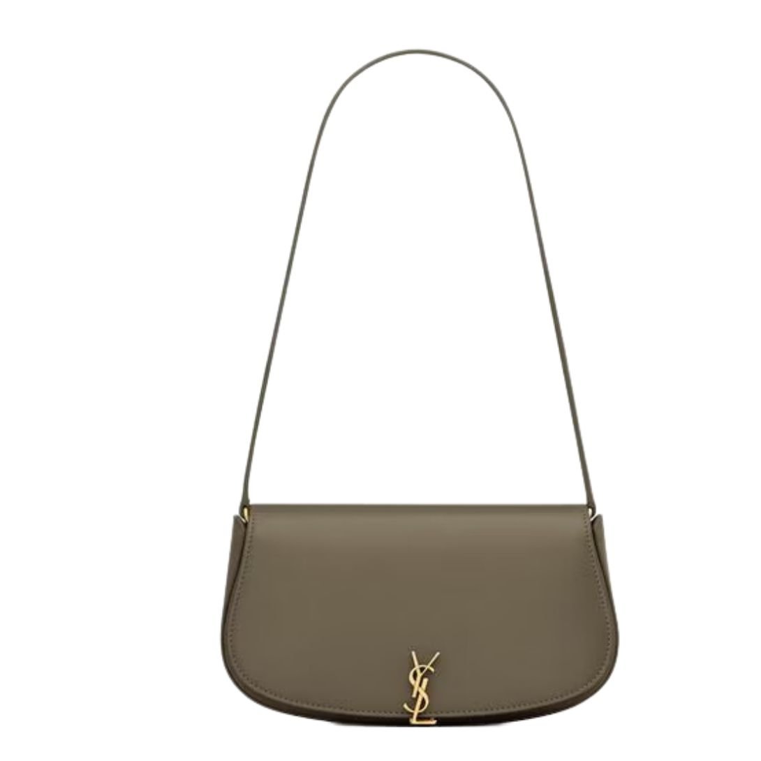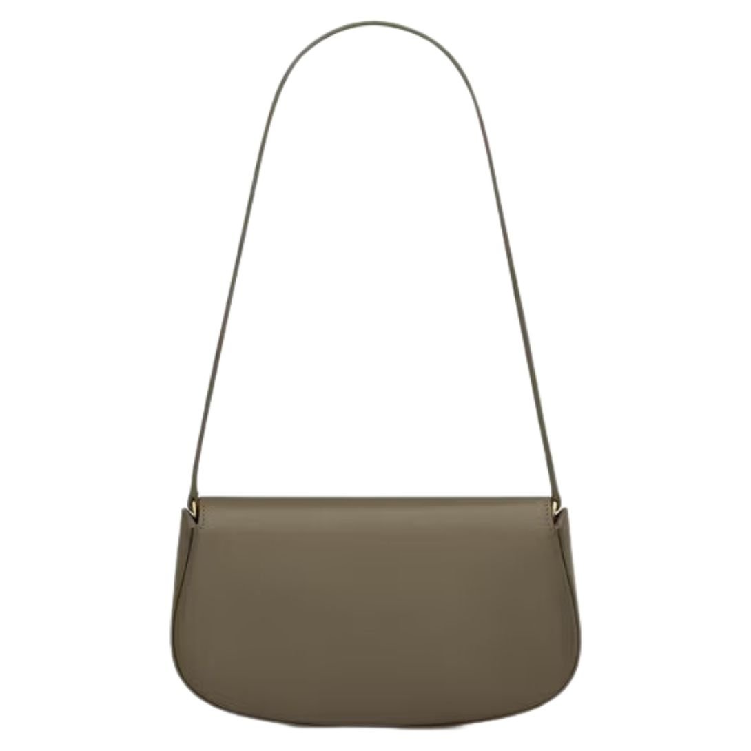 This sophisticated half-moon shoulder bag is crafted from polished calfskin, delivering both elegance and functionality. The bag features a sleek flap with a magnetic CASSANDRE hinge closure, making it both stylish and secure.