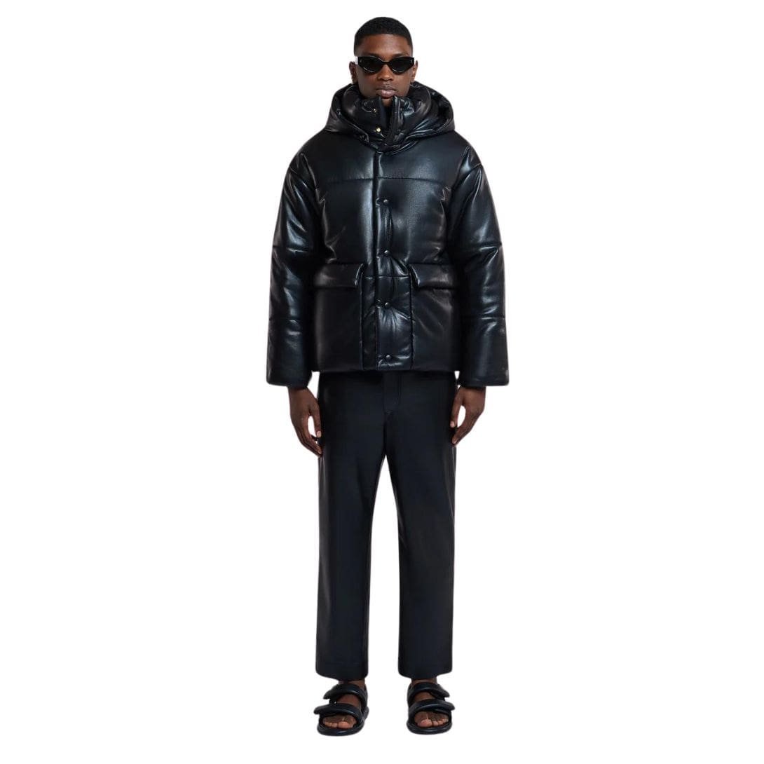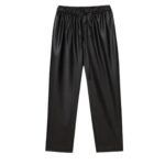 Crafted from Nanushka’s exclusive OKOBORâ„¢ material, the Jain pants showcase the brand’s commitment to innovation and sustainability. OKOBORâ„¢, known for its exceptional quality and eco-conscious properties, is utilized in a signature black hue, adding a touch of modernity to the classic design.