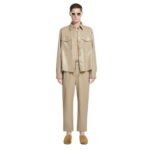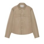 From its distinctive alt-leather fabric to its thoughtful design elements, every aspect of the Lenn shirt reflects Nanushka’s dedication to craftsmanship and style. The neutral ashy-taupe tone enhances its versatility, allowing for effortless integration into both casual and formal wardrobes. Whether paired with denim for a laid-back ensemble or layered over tailored trousers for a polished look, this shirt exudes understated sophistication.