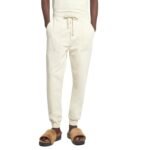 The addition of the embroidered logo at the back patch pocket serves as a subtle nod to the brand’s identity, adding a touch of sophistication to these otherwise laid-back sweatpants. It’s a detail that speaks to the brand’s commitment to quality and craftsmanship.