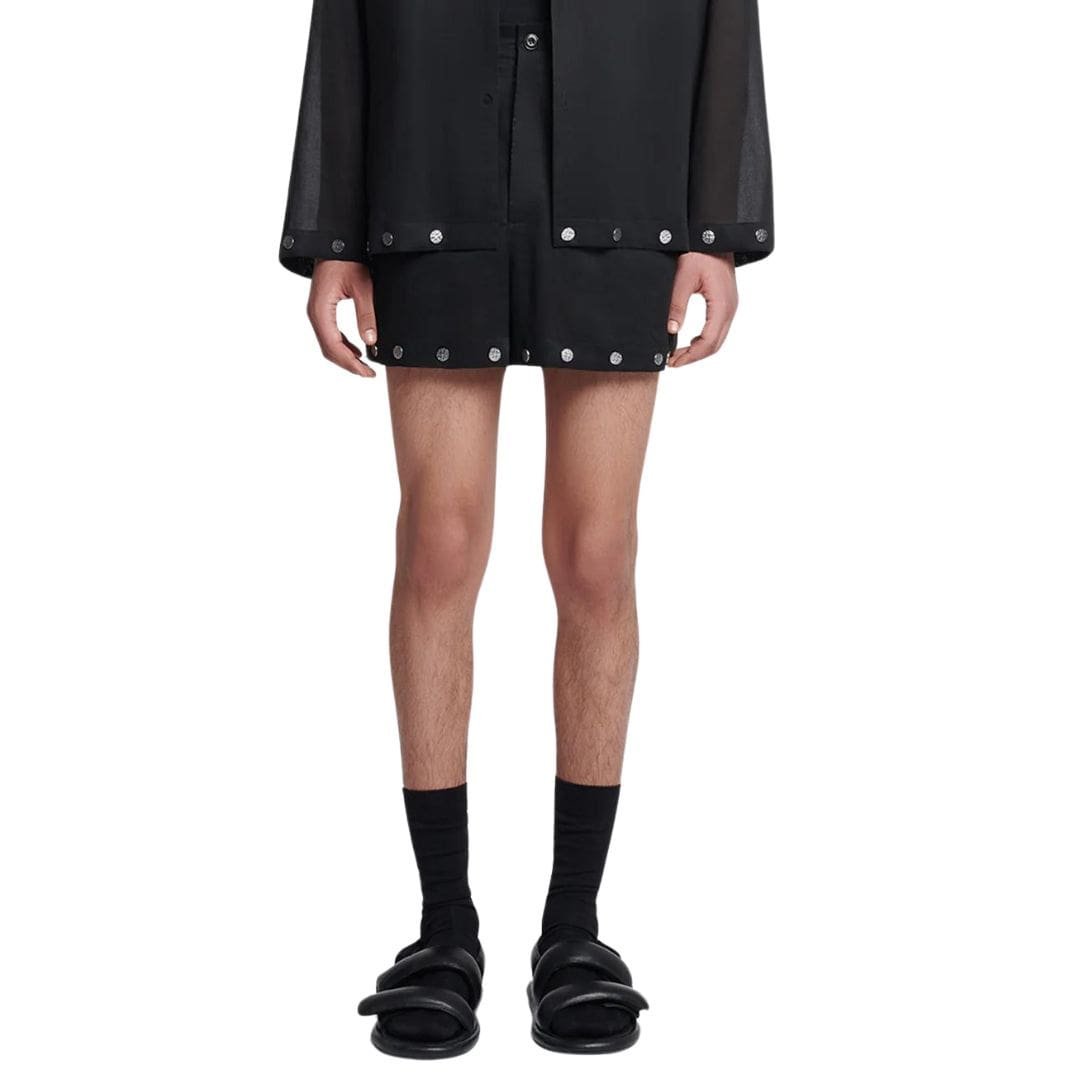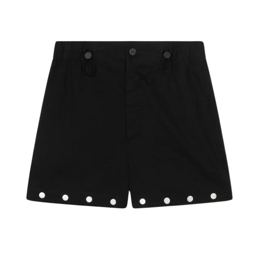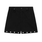 Adding to their modern allure are the silver studs detailing, which adorn the hem and cuffs of the shorts. These metallic accents add a touch of edge and attitude to the design, infusing the shorts with a sense of contemporary coolness that sets them apart from the ordinary.