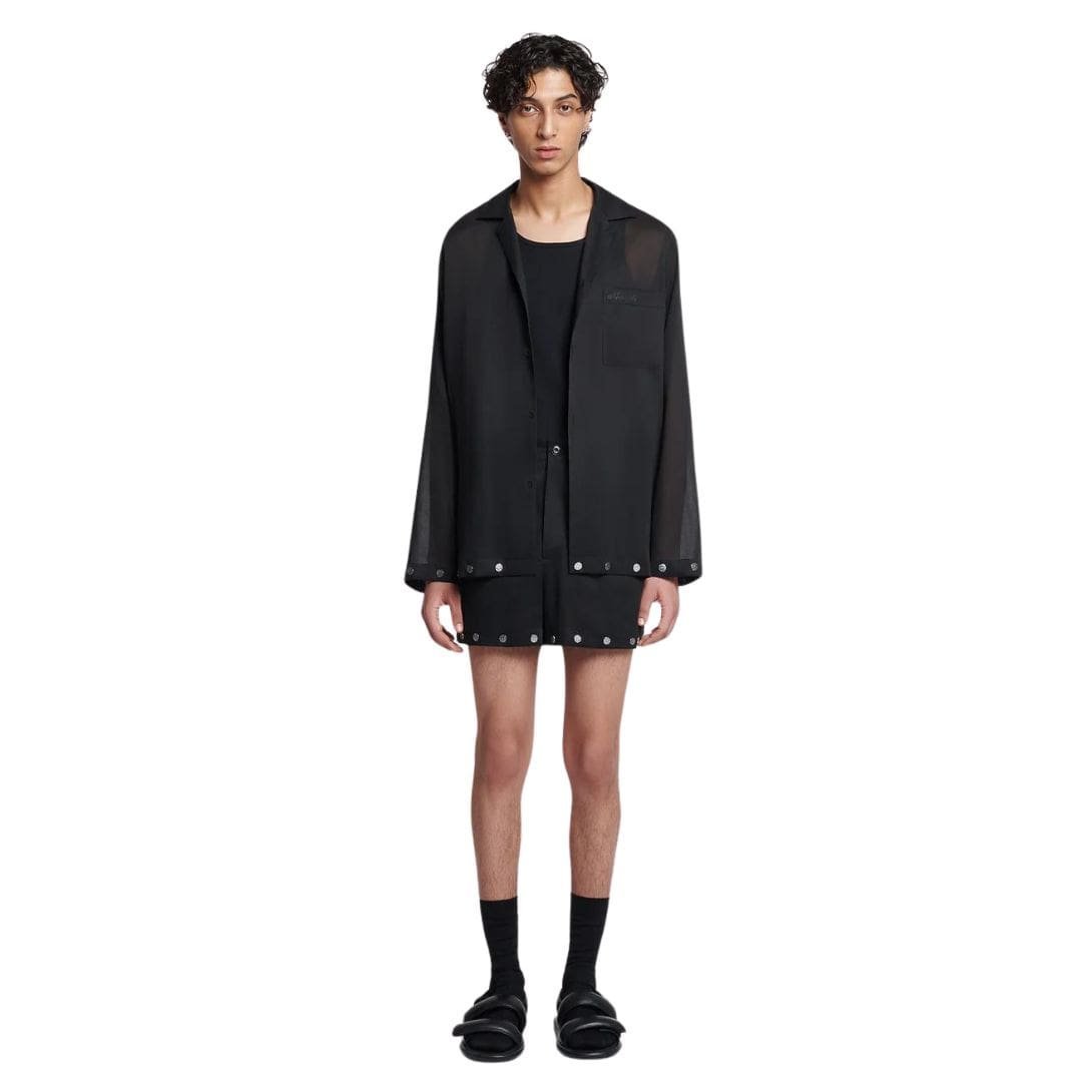 Indulge in contemporary elegance with NANUSHKA TALLON STUDDED ORGANZA BERMUDA SHORTS BLACK, meticulously crafted from luxurious organza fabric to exude sophistication with a modern twist. These Bermuda shorts boast a baggy fit distinguished by silver studs, adding an edgy flair to their refined silhouette.