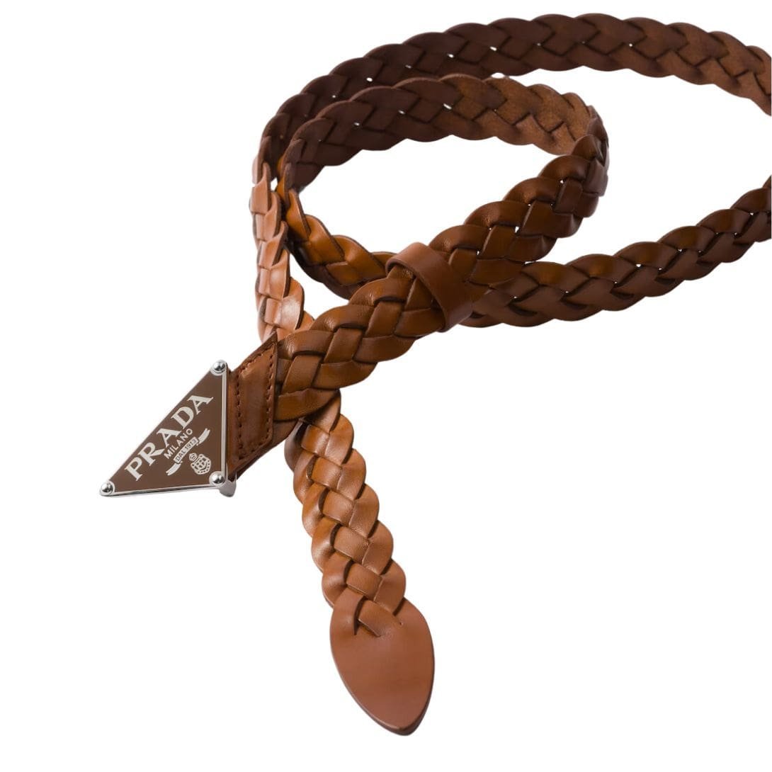 At first glance, the rich cognac hue of the belt immediately commands attention, exuding warmth and opulence. The supple leather, meticulously selected for its quality, promises durability and a luxurious tactile experience. Each stitch and detail is executed with utmost precision, reflecting Prada’s dedication to perfection in every aspect of design.