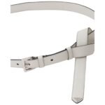 Immerse yourself in the heritage of timeless elegance with this Prada Leather Belt In White, where tradition meets contemporary sophistication. At its tip lies the iconic enameled-metal triangle logo, a symbol that traces its origins back to the trunks meticulously crafted by Mario Prada in 1913 collection, marking a legacy of unparalleled craftsmanship and innovation.