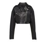 Constructed from supple, high-quality leather, the jacket boasts a sleek silhouette that contours to the body, enhancing the wearer’s shape while providing comfort and durability. The rich texture of the leather adds depth and character, elevating the jacket to a statement piece that commands attention.