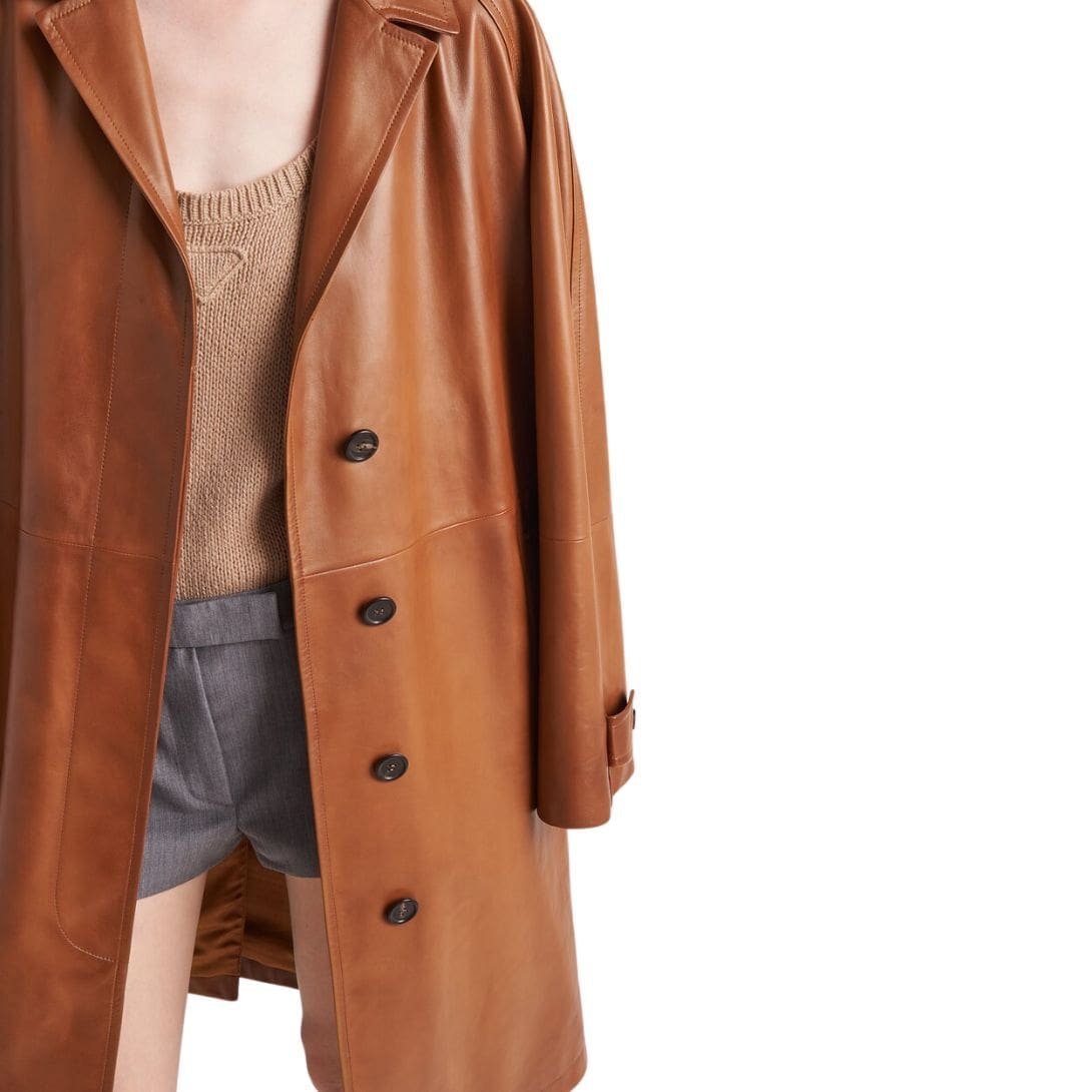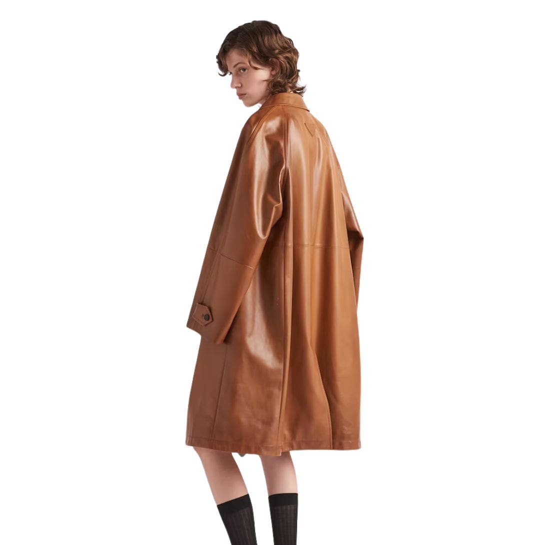 Versatility is key with this wardrobe essential. Whether paired with tailored trousers for a polished office look or layered over a cocktail dress for a night out, the Prada Nappa Leather Coat effortlessly transitions from day to night, making it a versatile investment piece for any occasion.