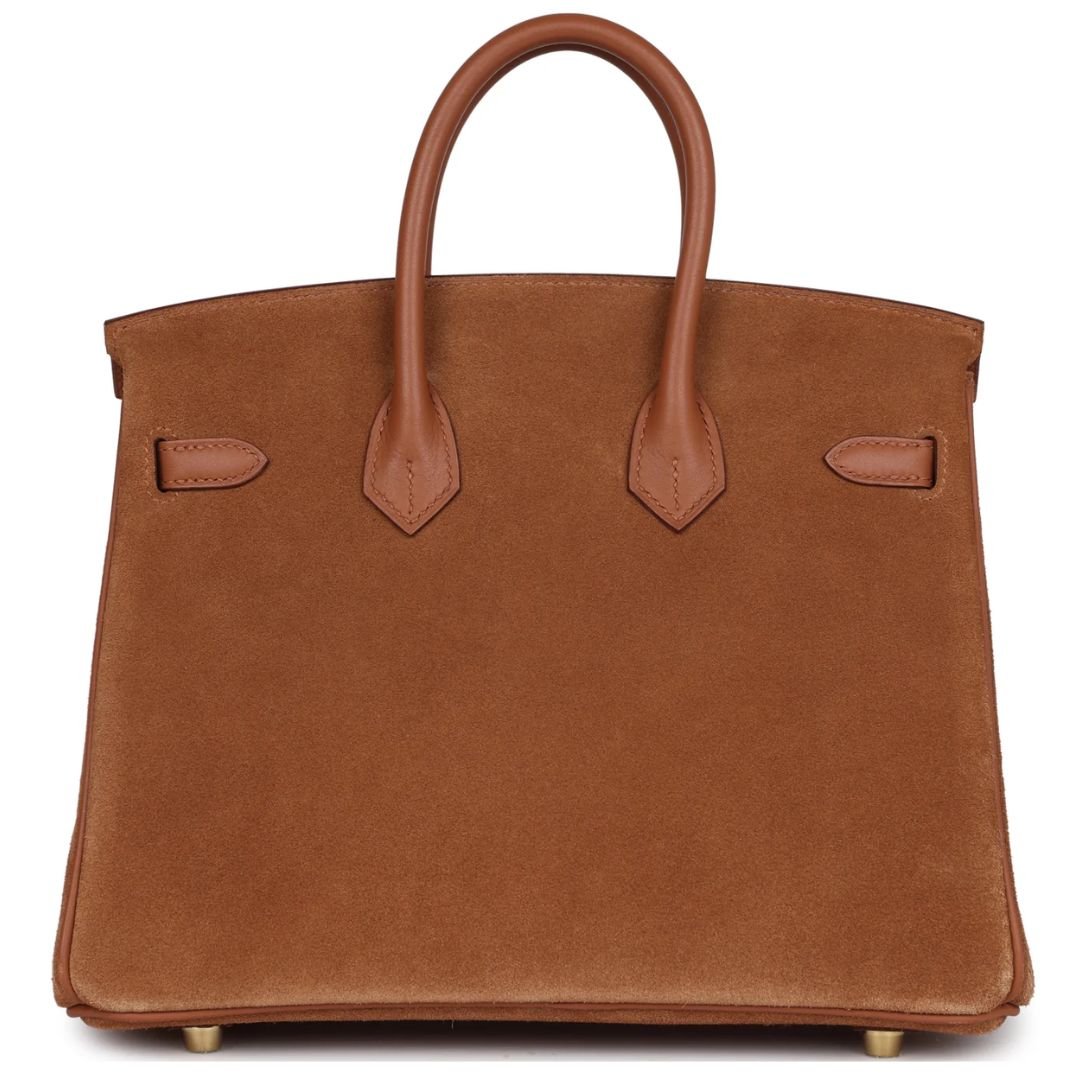 This Hermès Birkin 25 showcases a unique combination of Chamois Grizzly and Gold Swift leather, complemented by tonal stitching. Its refined craftsmanship and elegant design make it an iconic piece for any luxury collection.