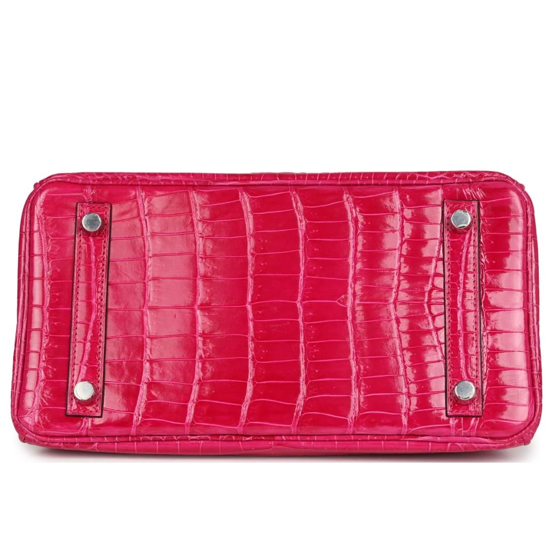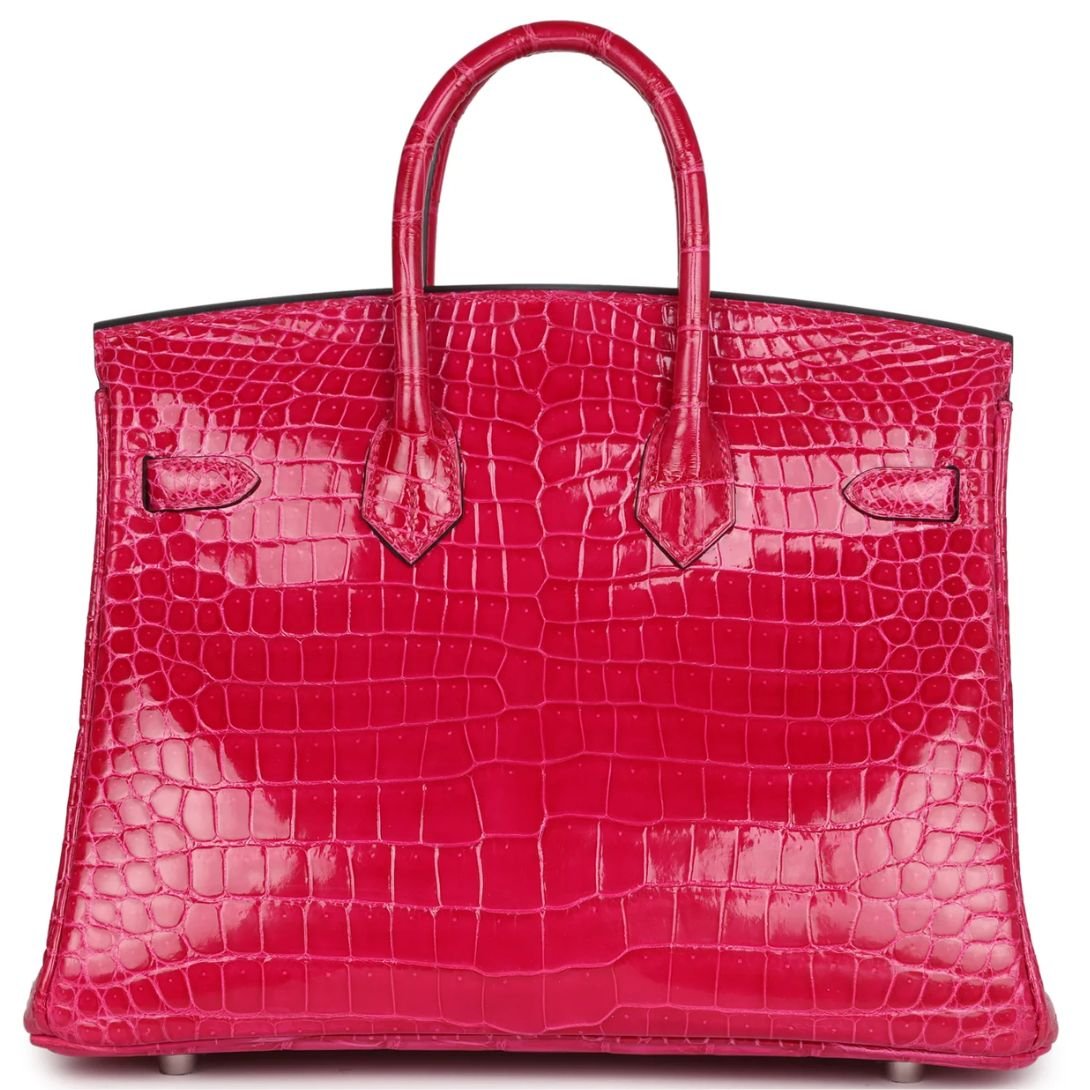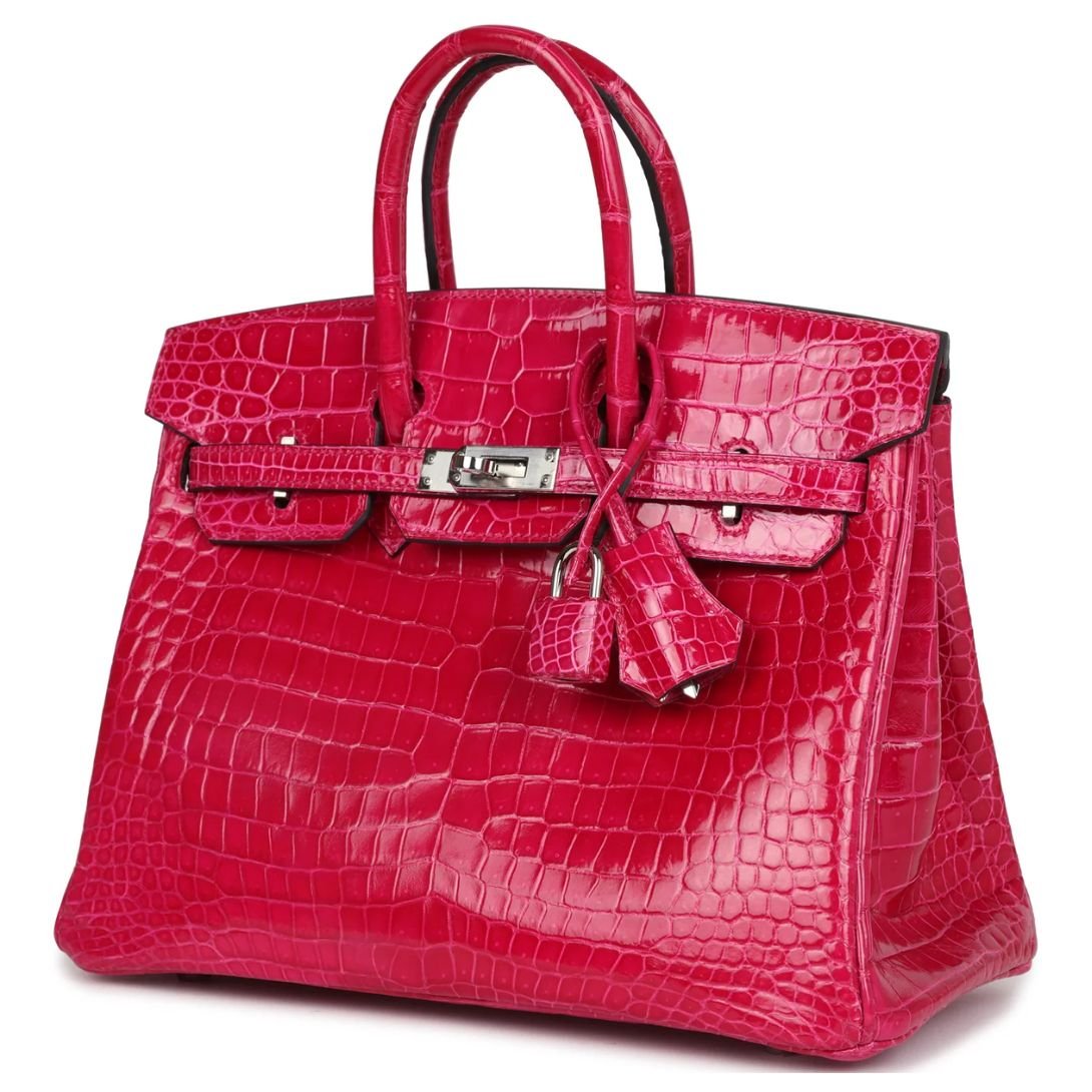 PRE-OWNED HERMÈS BIRKIN 25 ROSE MEXICO SHINY POROSUS CROCODILE PALLADIUM HARDWARE
