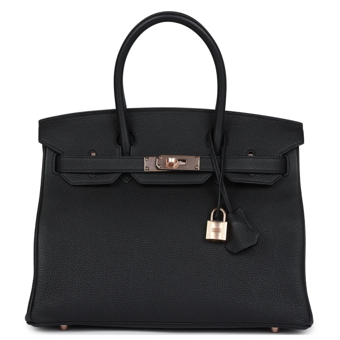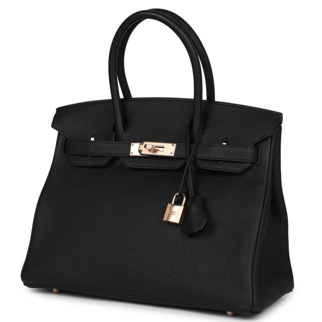 PRE-OWNED HERMÈS BIRKIN 30 BLACK TOGO ROSE GOLD HARDWARE