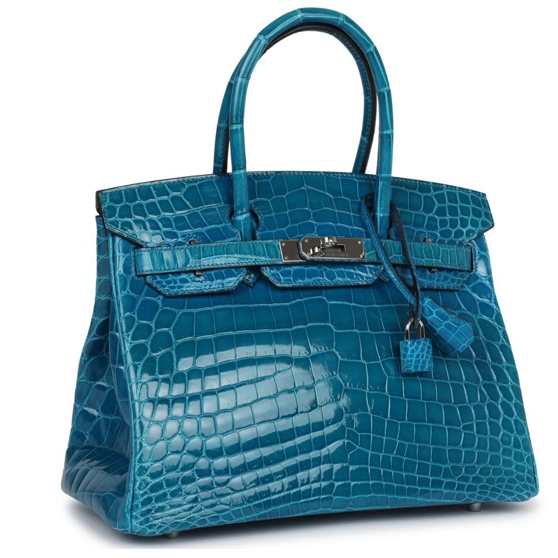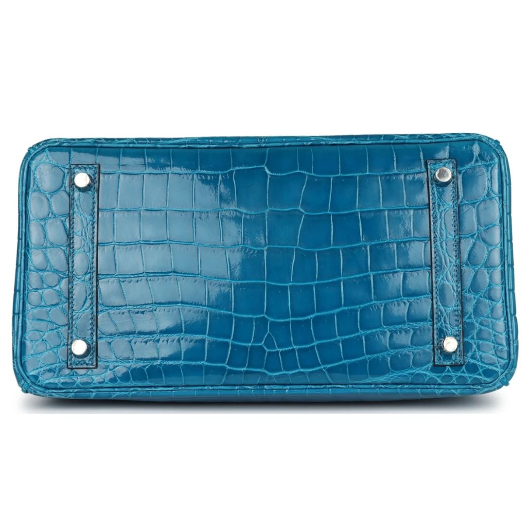 PRE-OWNED HERMÈS BIRKIN 30 BLEU IZMIR SHINY NILOTICUS CROCODILE PALLADIUM HARDWARE
