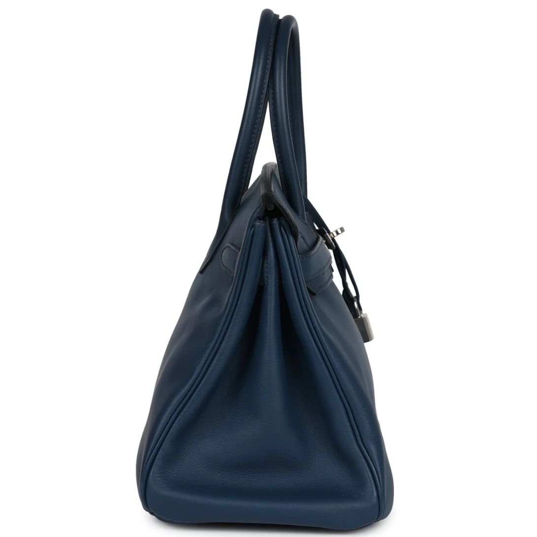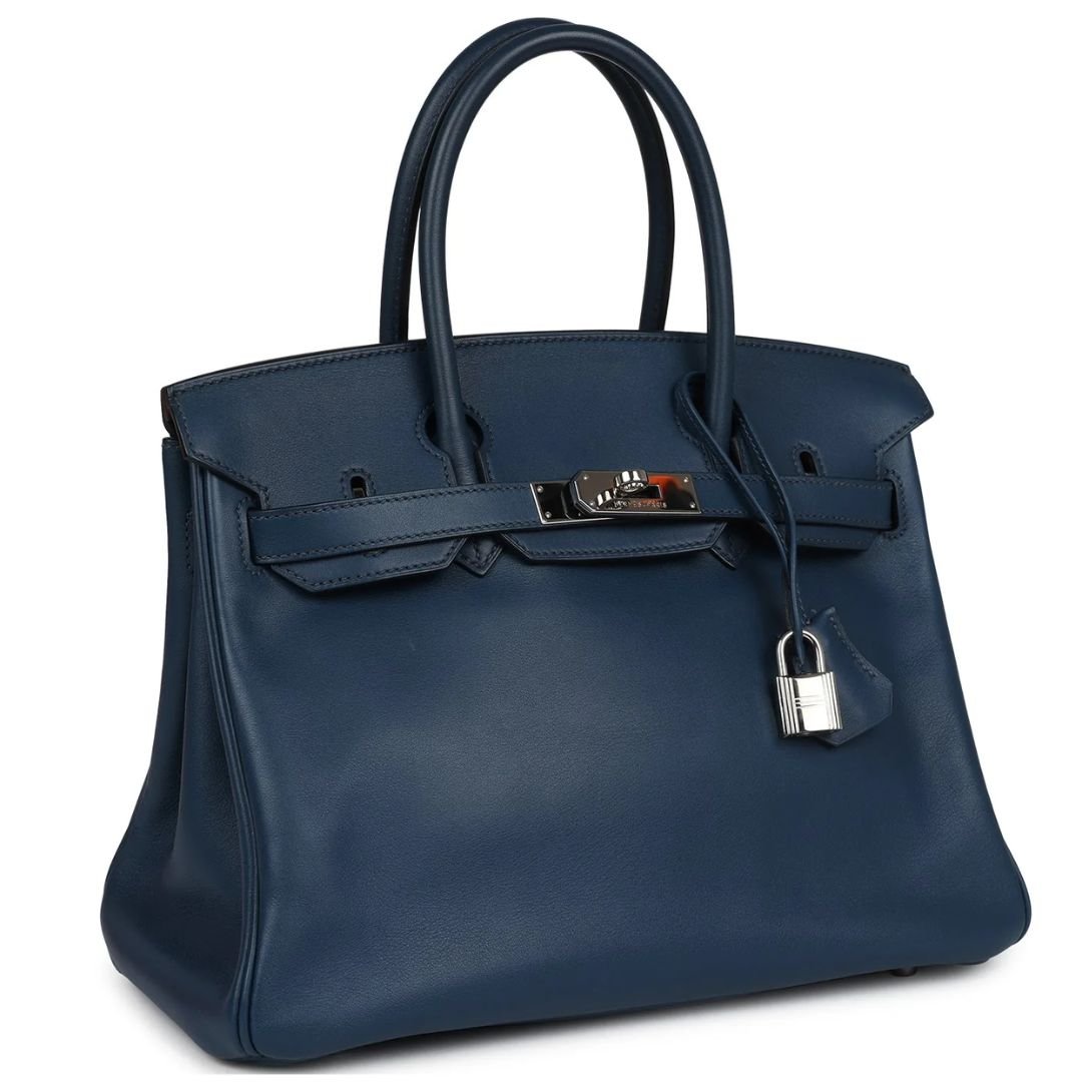 PRE-OWNED HERMÈS BIRKIN 30 DEEP BLEU SWIFT PALLADIUM HARDWARE