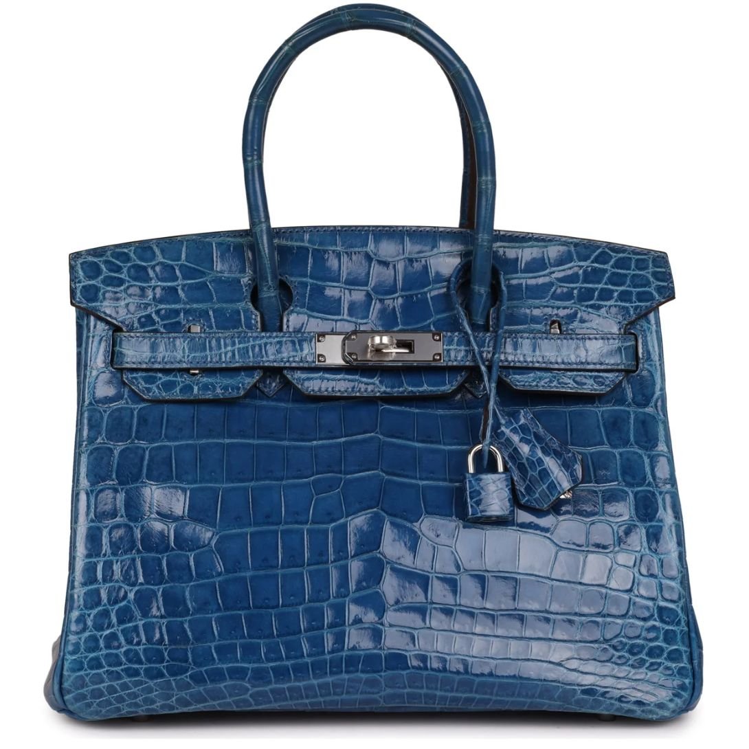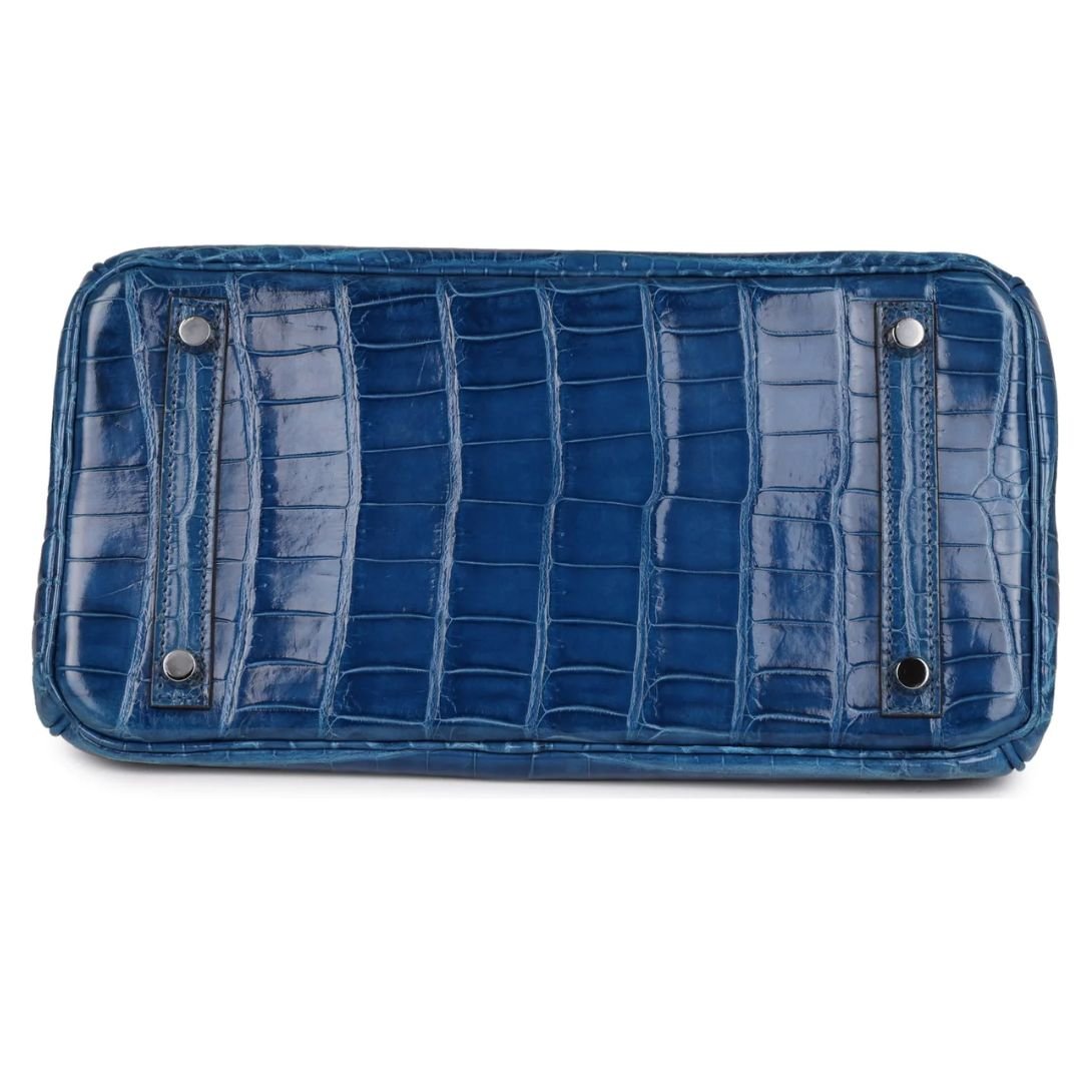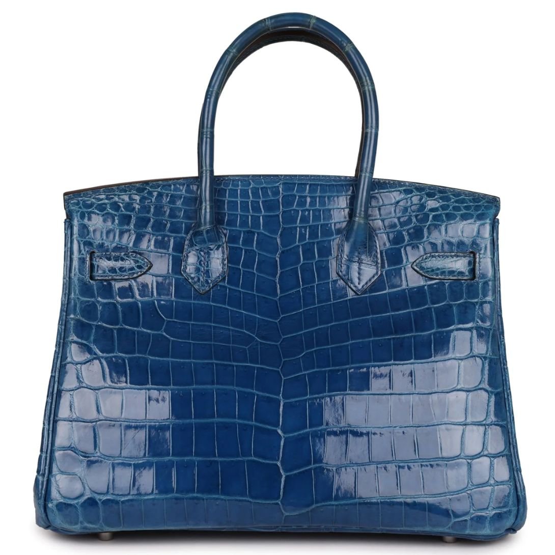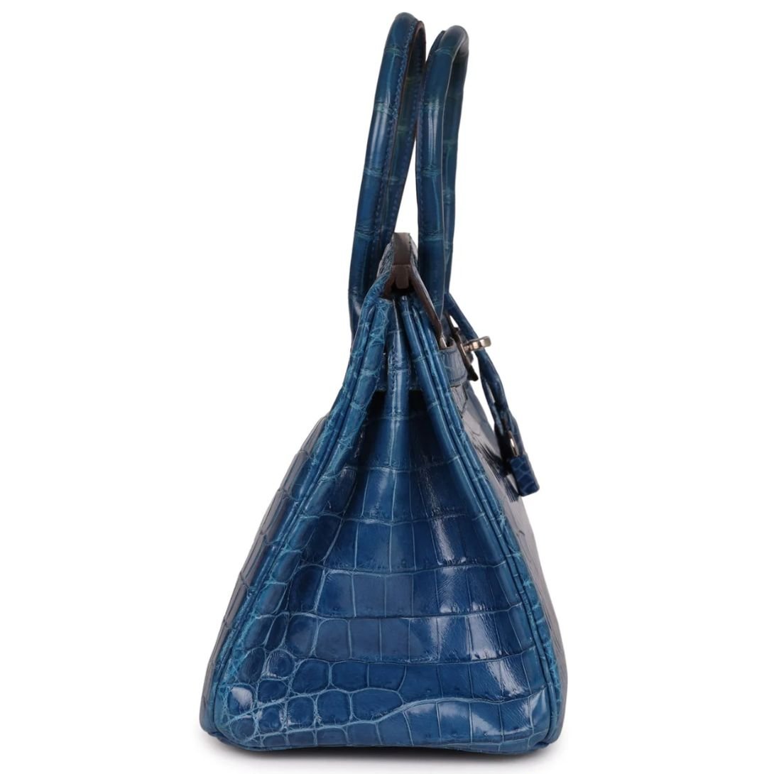 PRE-OWNED HERMÈS BIRKIN 30 MYKONOS SHINY NILOTICUS CROCODILE PALLADIUM HARDWARE