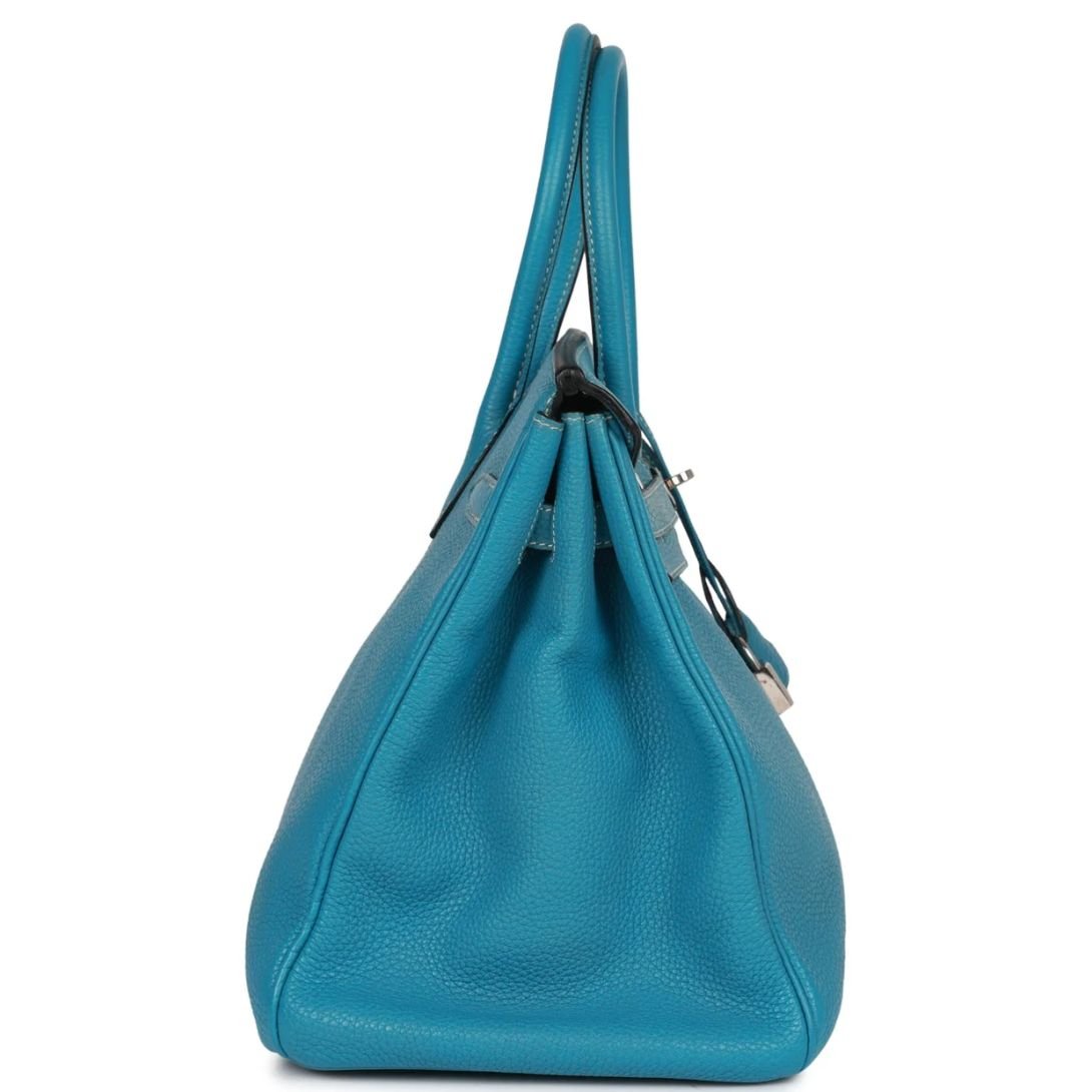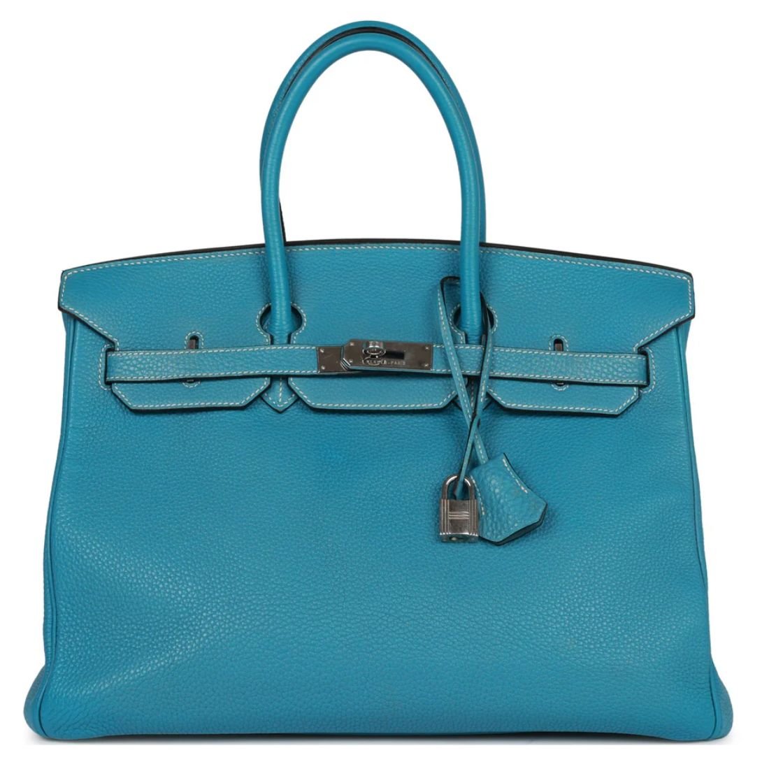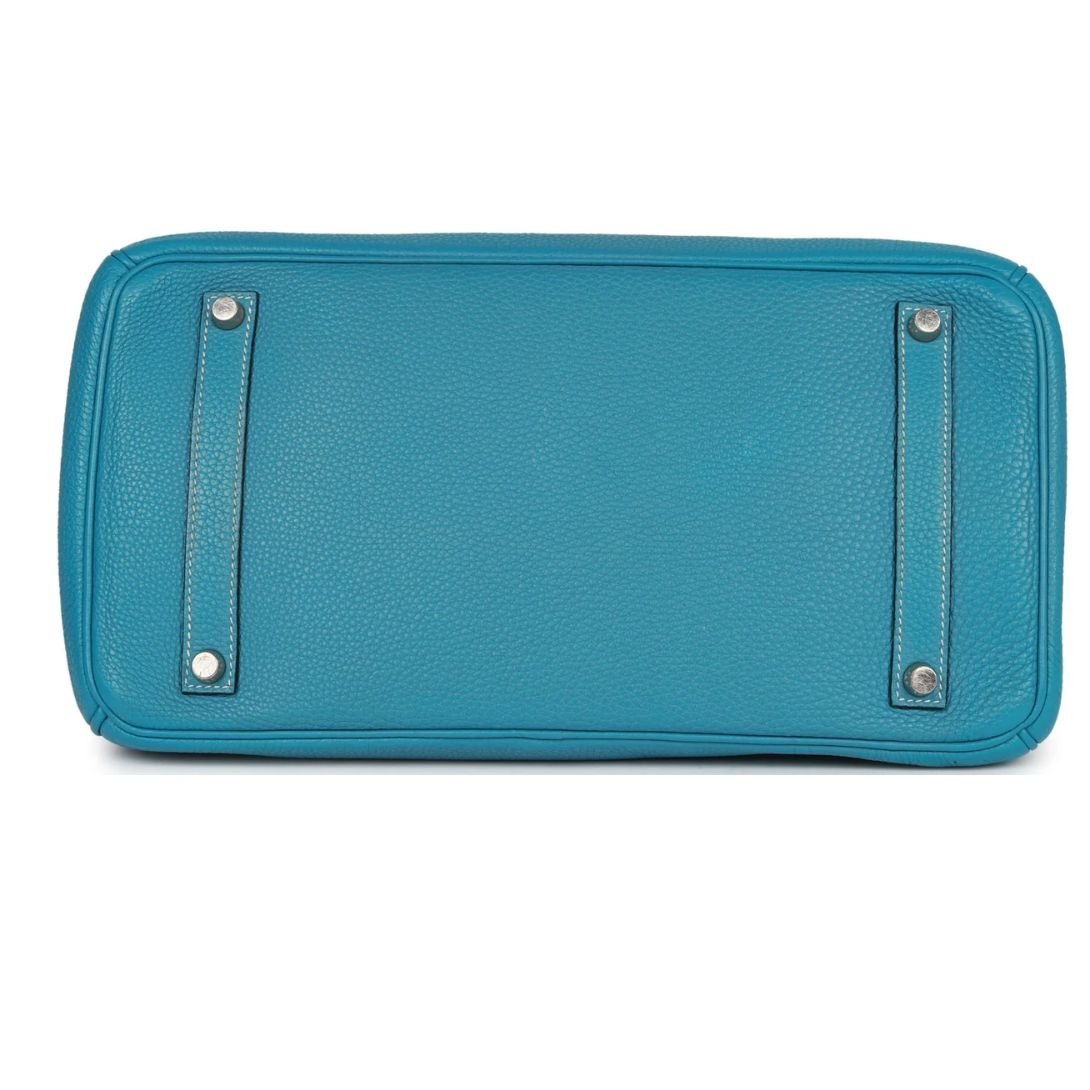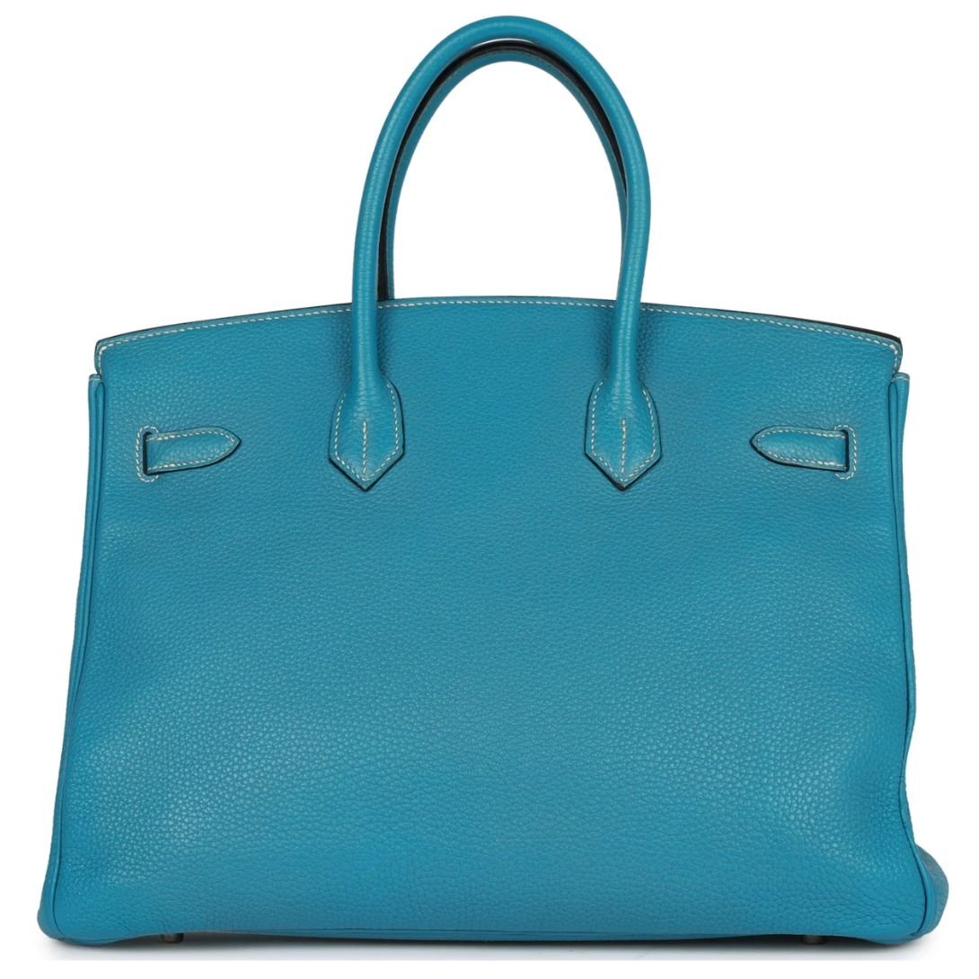 PRE-OWNED HERMÈS BIRKIN 35 BLUE JEAN TOGO PALLADIUM HARDWARE