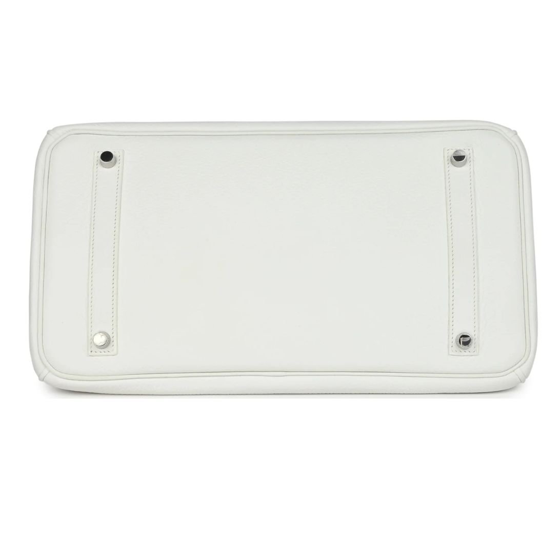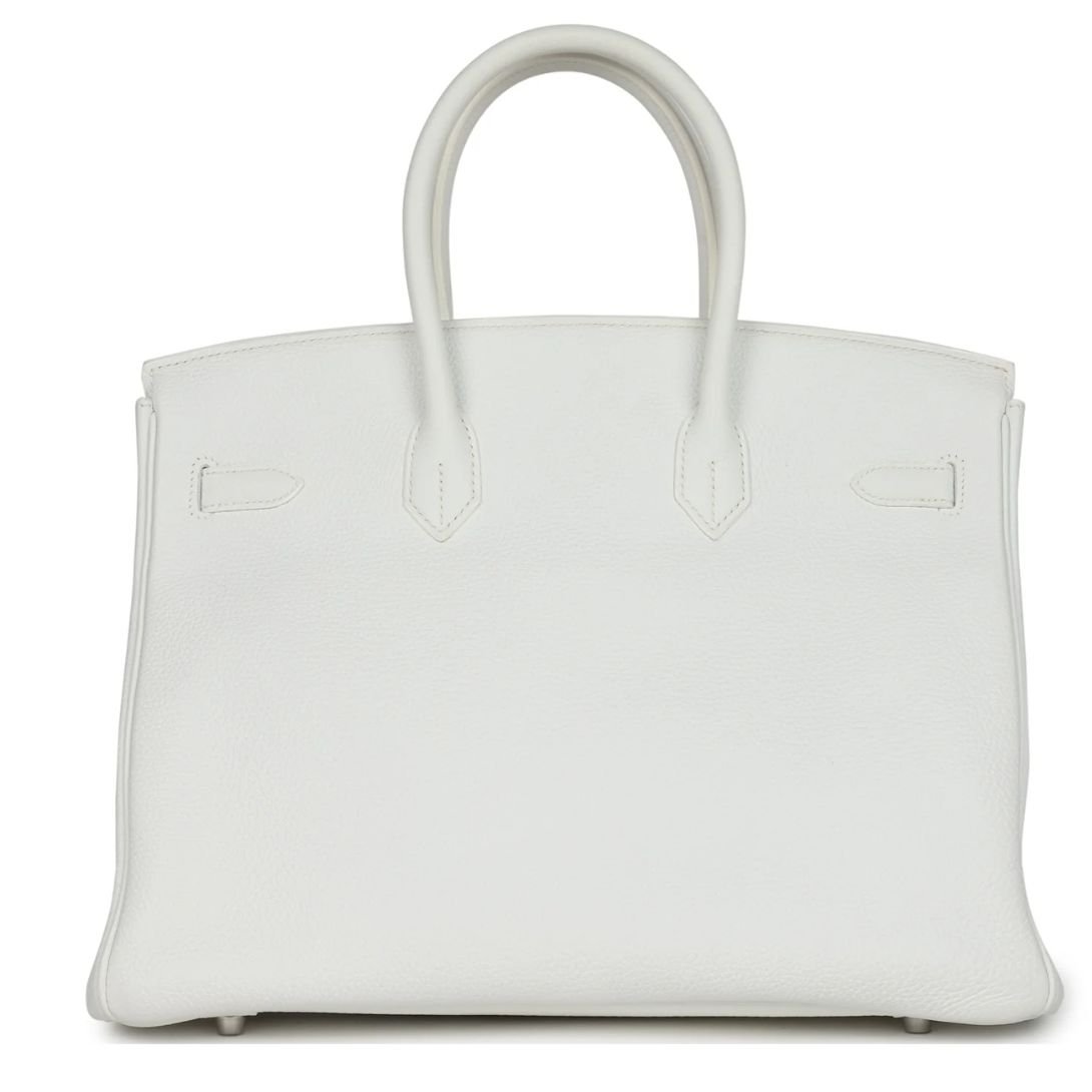 PRE-OWNED HERMÈS BIRKIN 35 WHITE CLEMENCE PALLADIUM HARDWARE