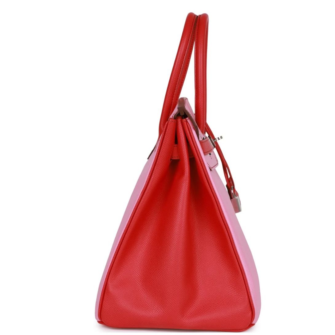 This Special Order Hermès Birkin 35 in Bubblegum and Bougainvillea Epsom leather with palladium hardware is a rare and stylish piece that seamlessly combines playful pink tones with classic sophistication.