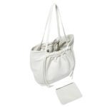 At the heart of the design lies the ruched open top, secured with a magnetic fastening for easy access to your belongings. The knotted ties add a touch of whimsy and elegance, draping languidly down the sides to create a fluid and graceful silhouette that enhances the bag’s overall allure.