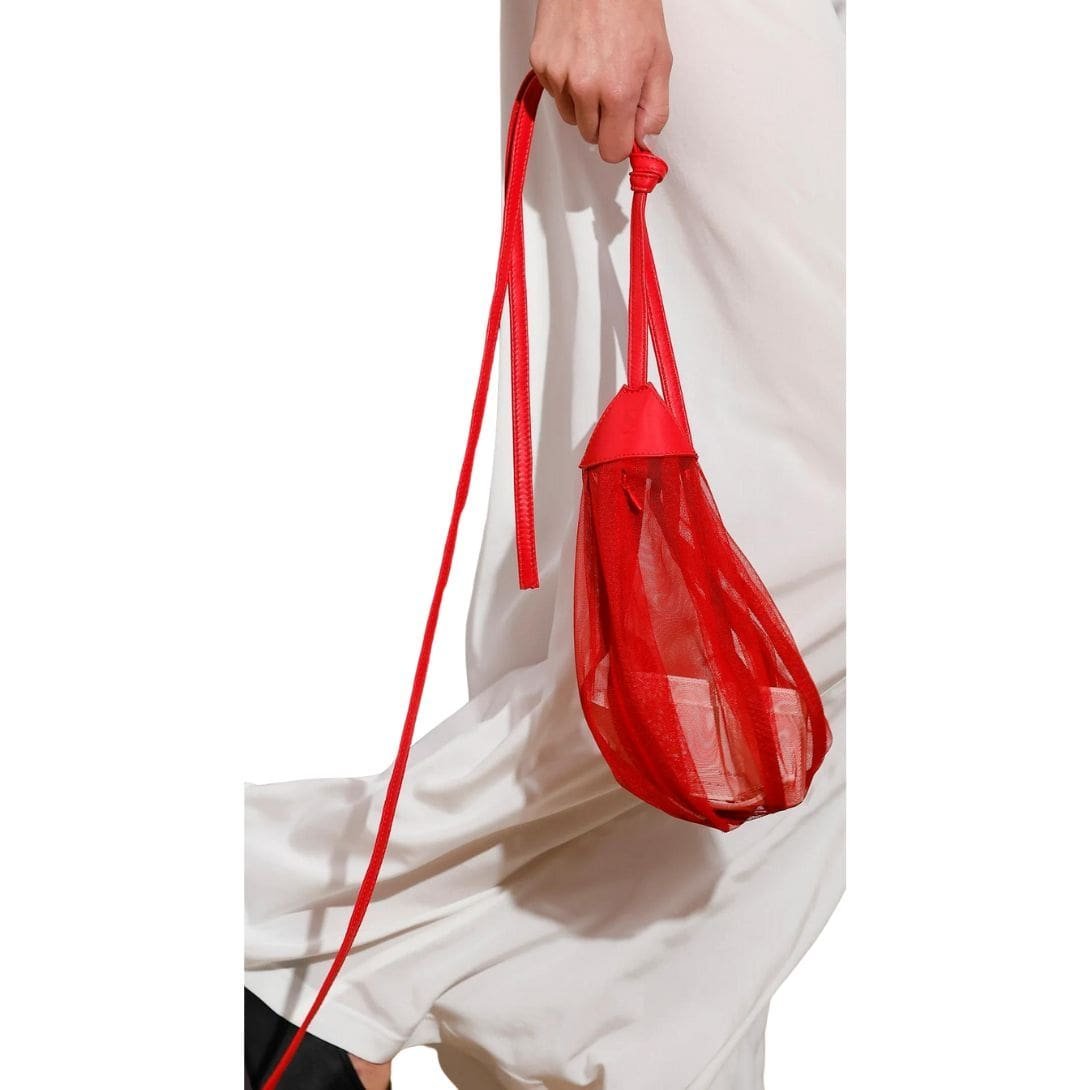 Introducing Look 3 from the exclusive Spring 2024 Runway Collection,Proenza Flip Shoulder Bag In Satin Red. available only at proenzaschouler.com: The Mesh Pouch, a fusion of ethereal elegance and modern functionality. Crafted with meticulous attention to detail, this shoulder bag redefines luxury with its unique design and impeccable craftsmanship.