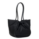 The defining feature of the Large Ruched Tote lies in its ruched top detail, adding a touch of texture and visual interest to the design. This innovative element, coupled with the signature gold-tone logo stamp adorning the exterior, reflects the brand’s commitment to pushing boundaries and setting new standards of luxury.