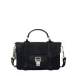 Taking inspiration from Proenza Tonal PS1 Tiny Bag Black. the enduring functionality and timeless aesthetic of traditional workwear satchels, the PS1 Tiny Bag stands as a testament to both practicality and elegance. Crafted meticulously from luxurious lambskin leather in a classic black hue, this iteration represents a sophisticated accessory suitable for various occasions.