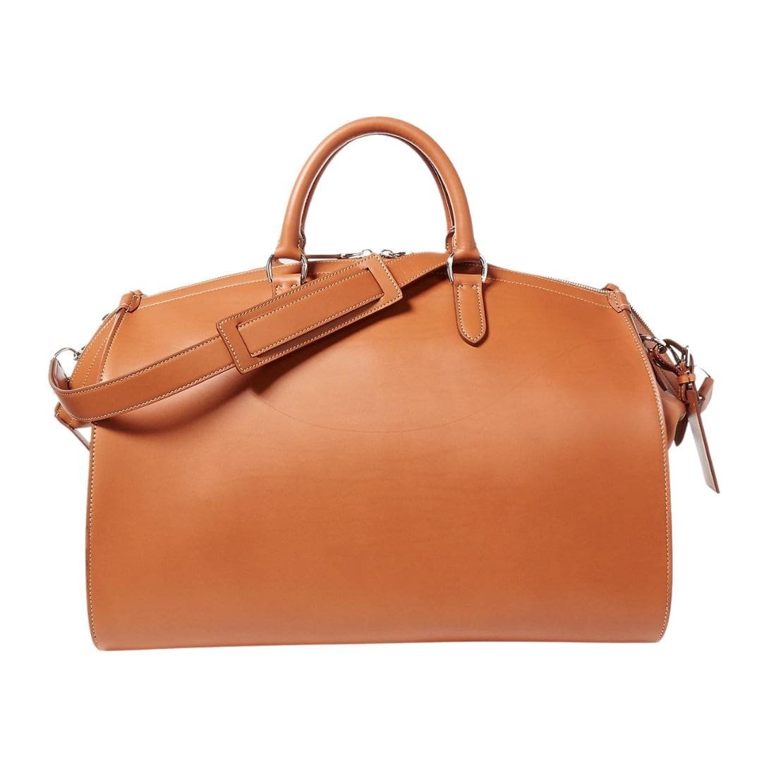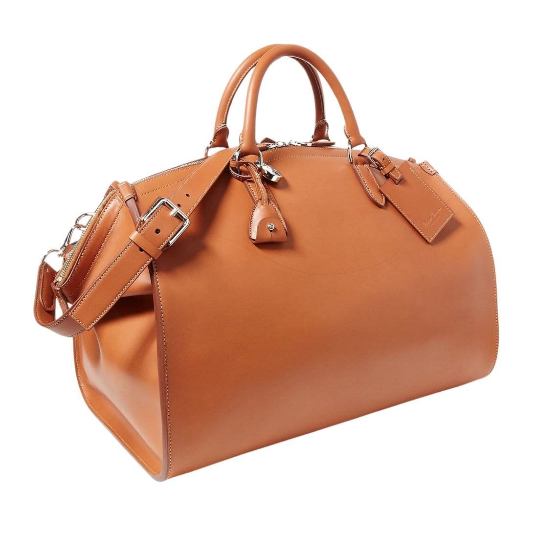 The Ralph Lauren Calfskin Duffel is a luxury travel bag that epitomizes sophisticated elegance and meticulous craftsmanship. Designed for discerning travelers, this duffel is made from premium calfskin leather, renowned for its softness, durability, and refined texture. The rich leather is expertly tanned to achieve a deep, lustrous finish that only improves with age, developing a unique patina over time. RALPH LAUREN CALFSKIN DUFFEL