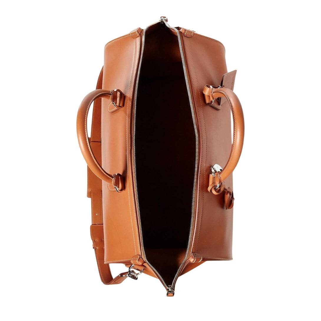 Comfort and convenience are paramount in the design of this duffel. It comes with sturdy leather handles for a comfortable grip and a detachable, adjustable shoulder strap for versatile carrying options. The reinforced base provides additional durability, ensuring the bag maintains its shape and stands up to the rigors of travel.