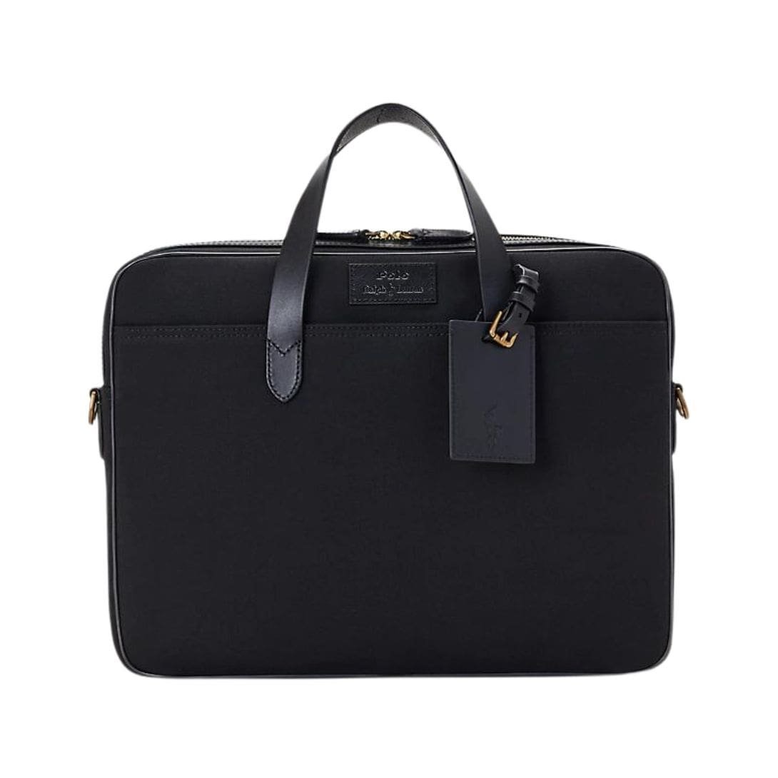 The Ralph Lauren Leather-Trim Canvas Briefcase bag embodies the quintessence of refined elegance and timeless sophistication. Crafted with meticulous attention to detail and unparalleled craftsmanship, this briefcase seamlessly marries form and function, making it the epitome of luxury for the modern professional.