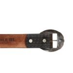 Complementing the studded design is a sturdy yet stylish buckle, typically made of high-quality metal with a polished finish. The buckle’s minimalist design enhances the belt’s overall aesthetic, providing a perfect balance between boldness and subtlety. The fastening mechanism is both practical and secure, allowing for easy adjustment to achieve the perfect fit.