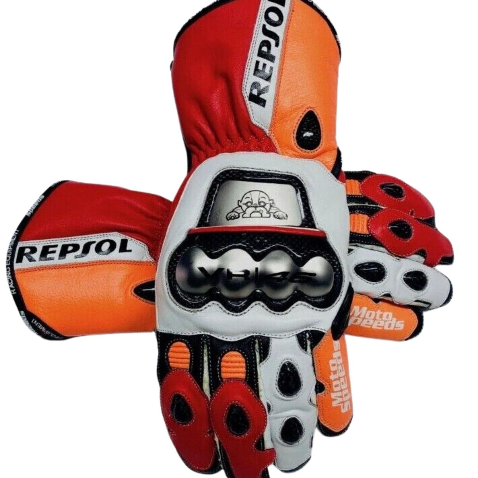 The Repsol Motorcycle Leather Racing Gloves Motorbike Riding Gloves All sizes are engineered for high-performance riding, offering exceptional protection and comfort for motorbike enthusiasts of all levels. Designed to meet the demands of the track and the road, these gloves are meticulously crafted with premium materials and innovative features.