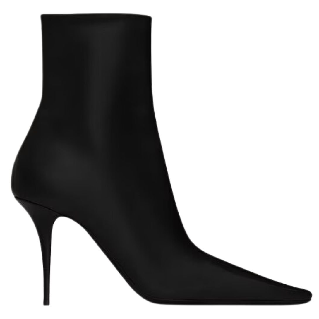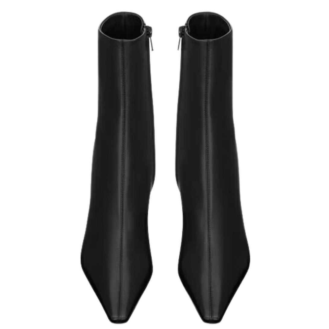 These ankle boots combine high fashion with a timeless design, perfect for both day-to-night styling. The stiletto heel adds height, while the luxurious lambskin leather and brass details offer a touch of elegance.