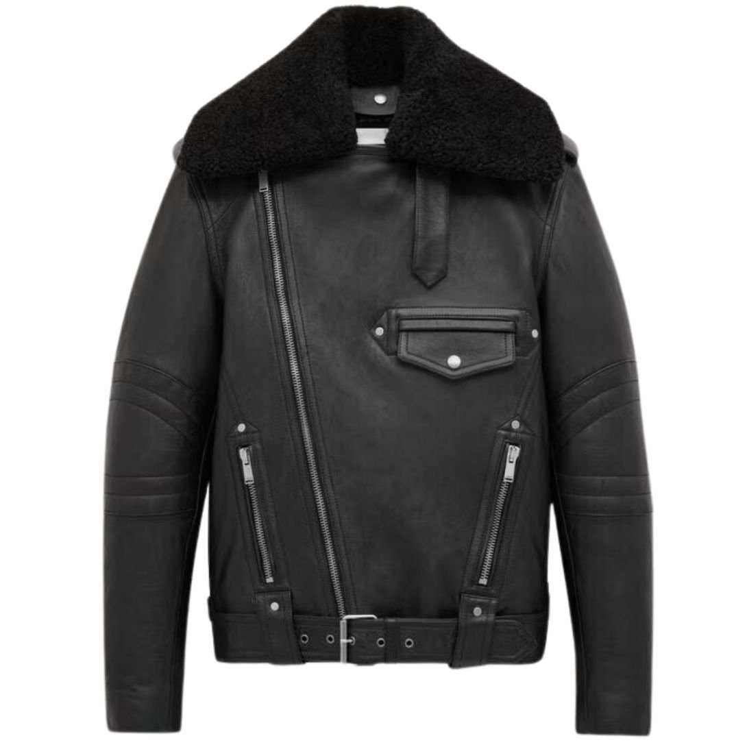 SAINT LAURENT BIKER JACKET IN VINTAGE LEATHER AND SHEARLING