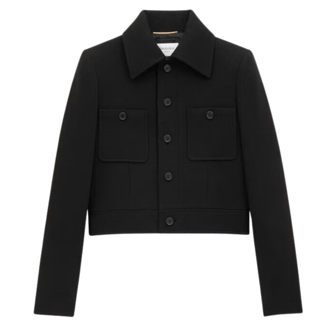 SAINT LAURENT CROPPED JACKET IN COTTON SERGE