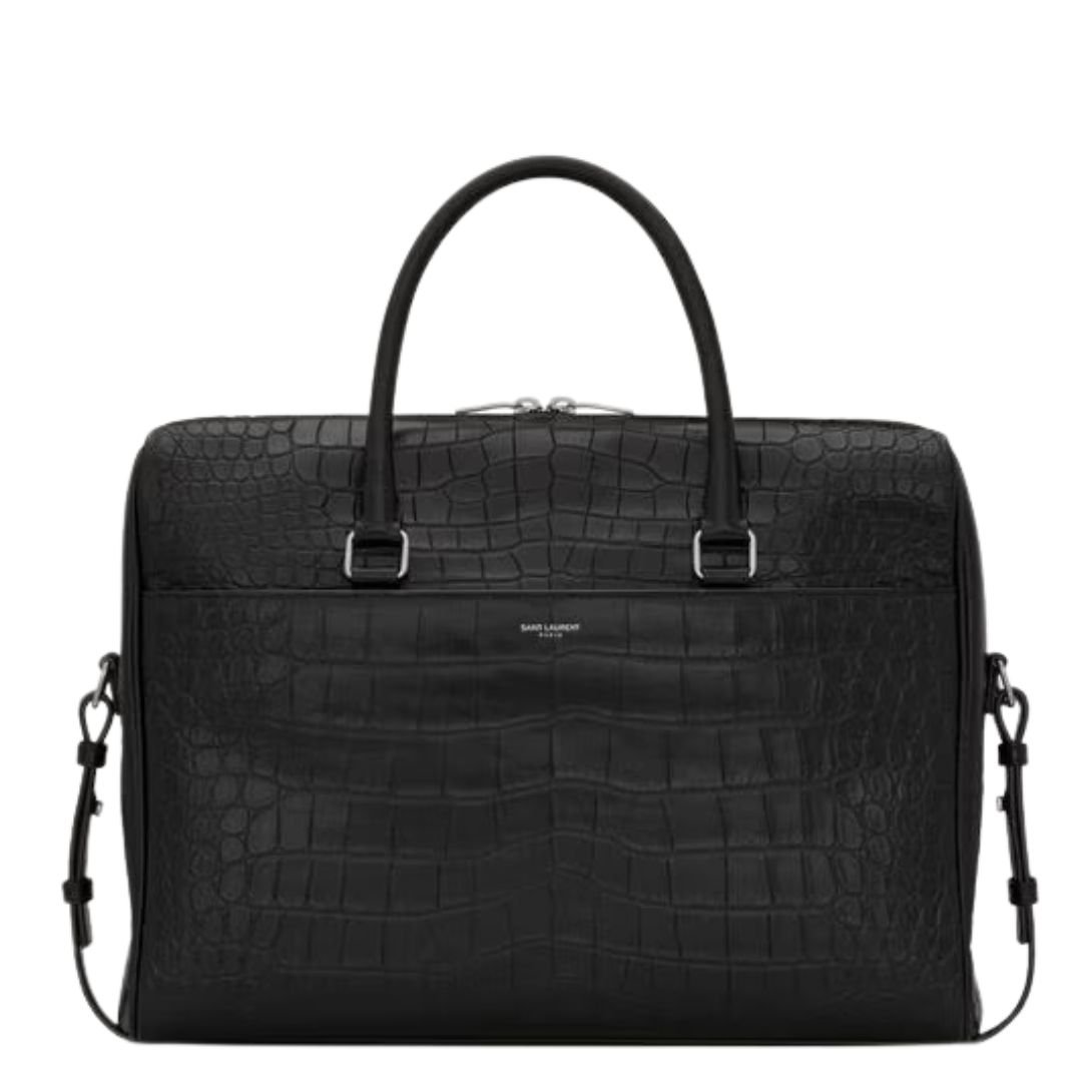 SAINT LAURENT DUFFLE BRIEFCASE BAG IN CROCODILE EMBOSSED MATTE LEATHER