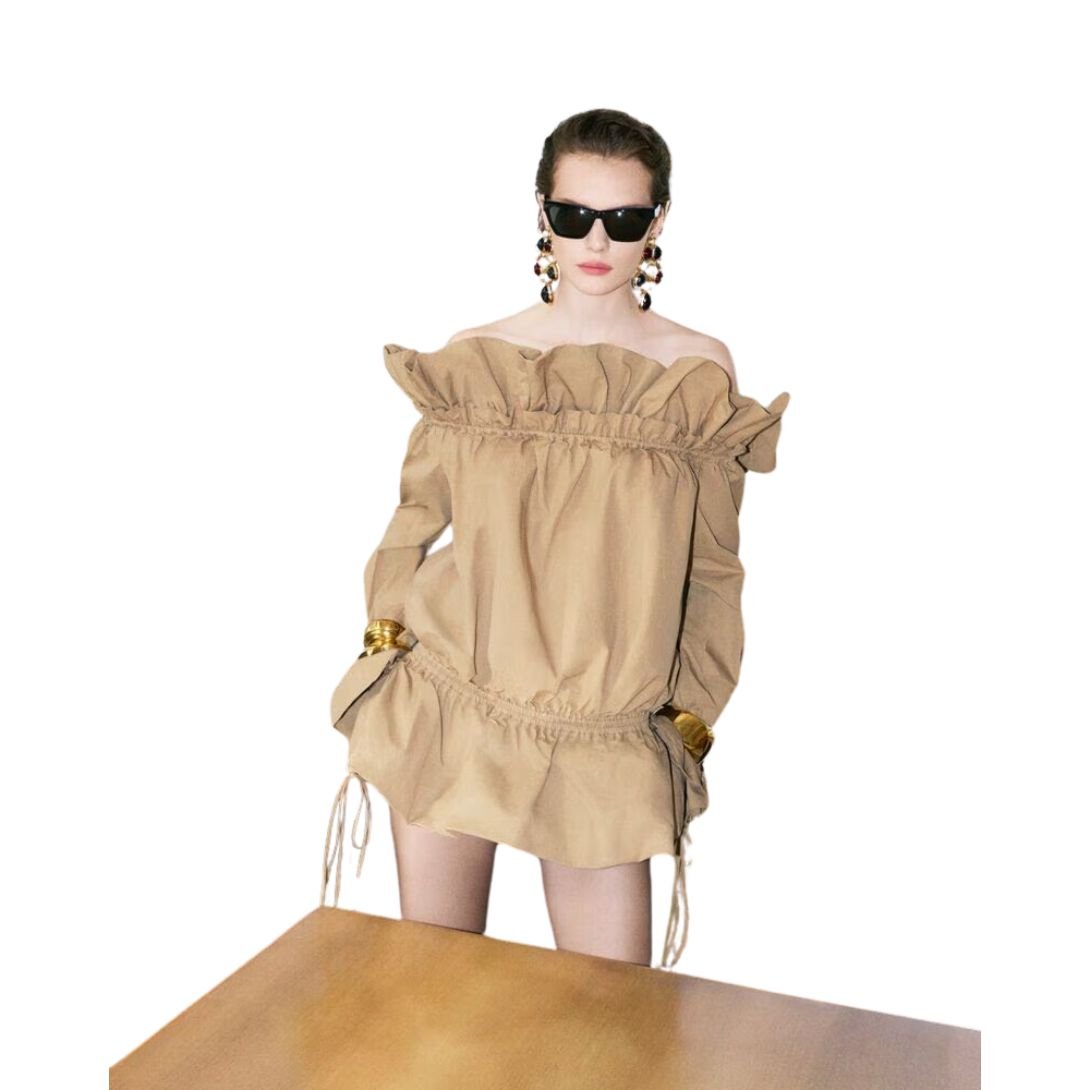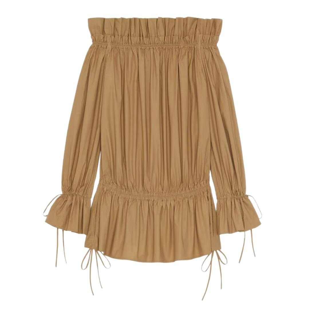 SAINT LAURENT GATHERED DRESS IN COTTON SERGE
