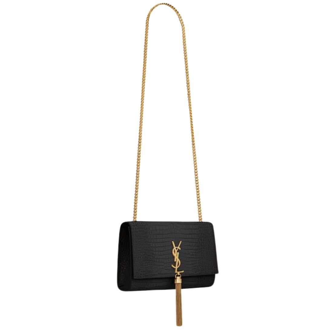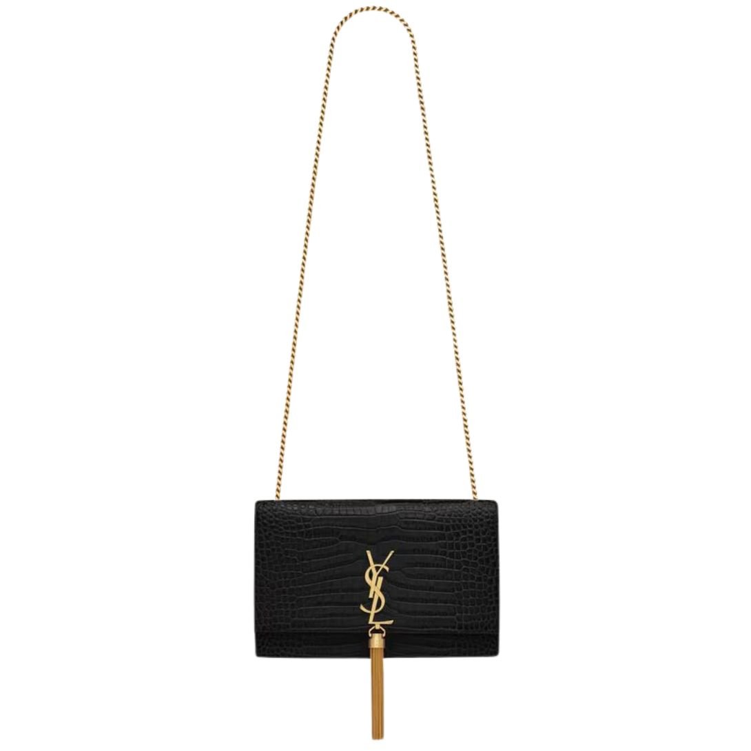 SAINT LAURENT KATE MEDIUM TASSEL IN CROCODILE EMBOSSED LEATHER