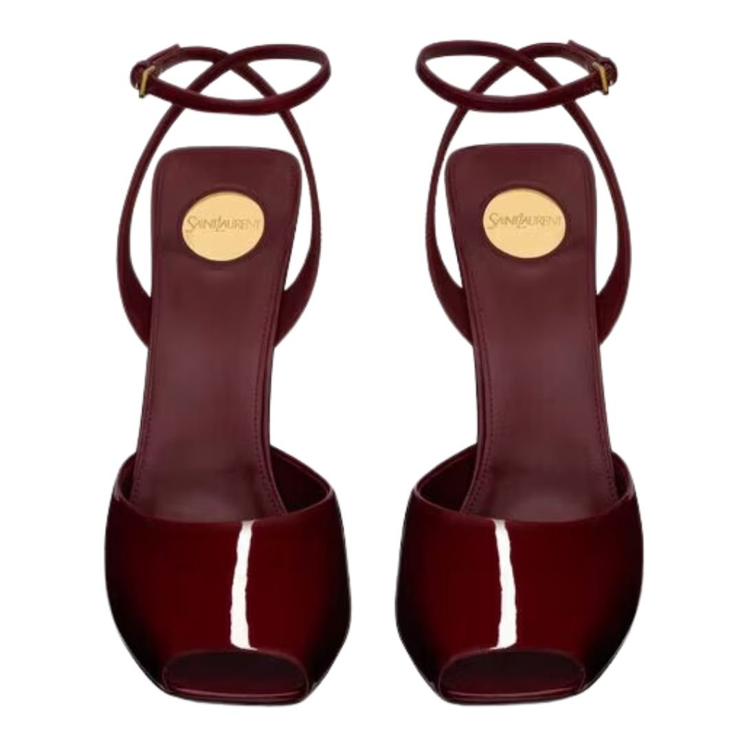 The sandals are adorned with a round Saint Laurent-engraved metal plaque on the insole, a signature mark of the brand’s attention to detail. The covered square open toe and sleek stiletto heel combine to create a modern and sophisticated aesthetic.