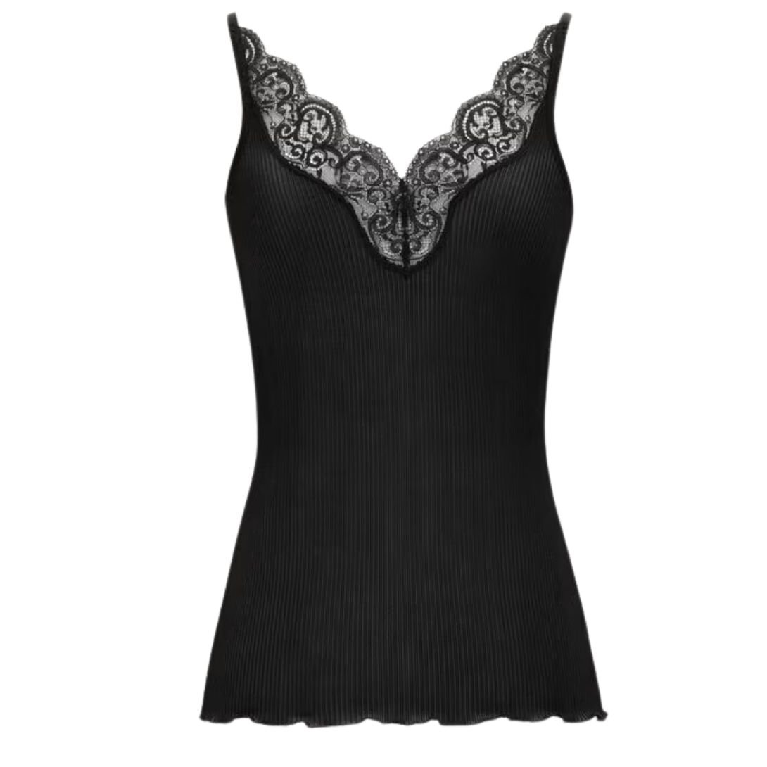 SAINT LAURENT LACED TANK TOP IN RIBBED SILK JERSEY
