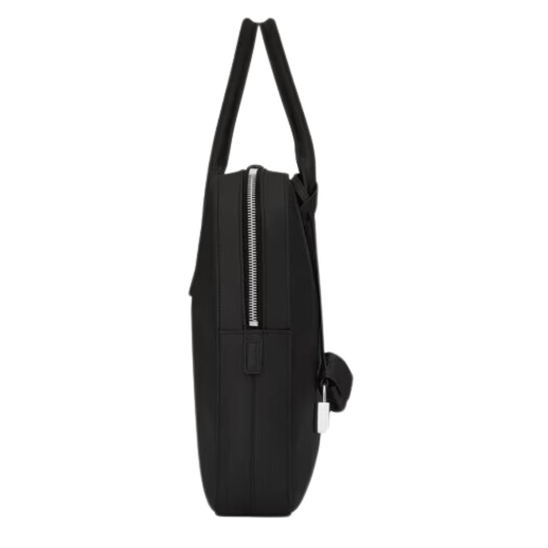 SAINT LAURENT MUSEUM SMALL FLAT BRIEFCASE IN BLACK TEXTURED LEATHER