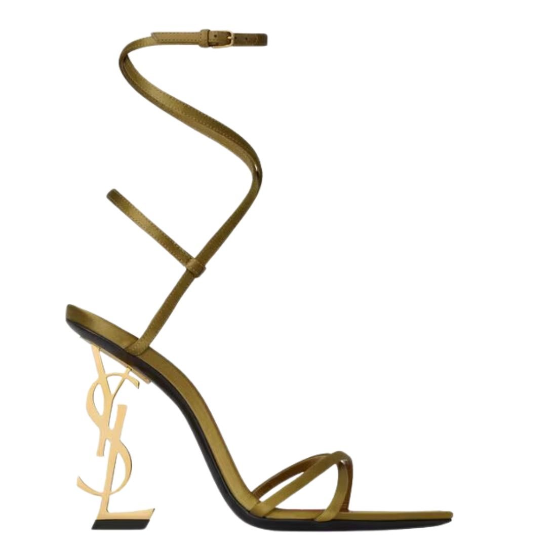 A round Saint Laurent-engraved metal plaque on the insole subtly signifies the brand’s quality and craftsmanship. The Cassandre heel, made of gold-tone metal, adds a touch of opulence and elevates the overall design.