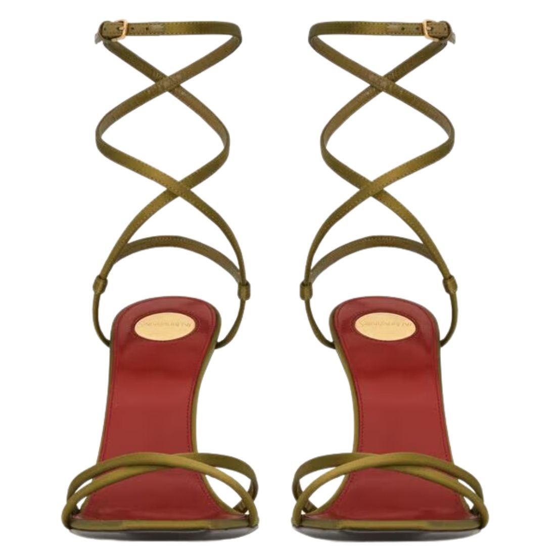 These sandals boast a chic design with a Cassandre heel and square toe, featuring elegant crisscrossed straps and an adjustable ankle strap. The combination of these elements creates a modern, sophisticated look perfect for any occasion.