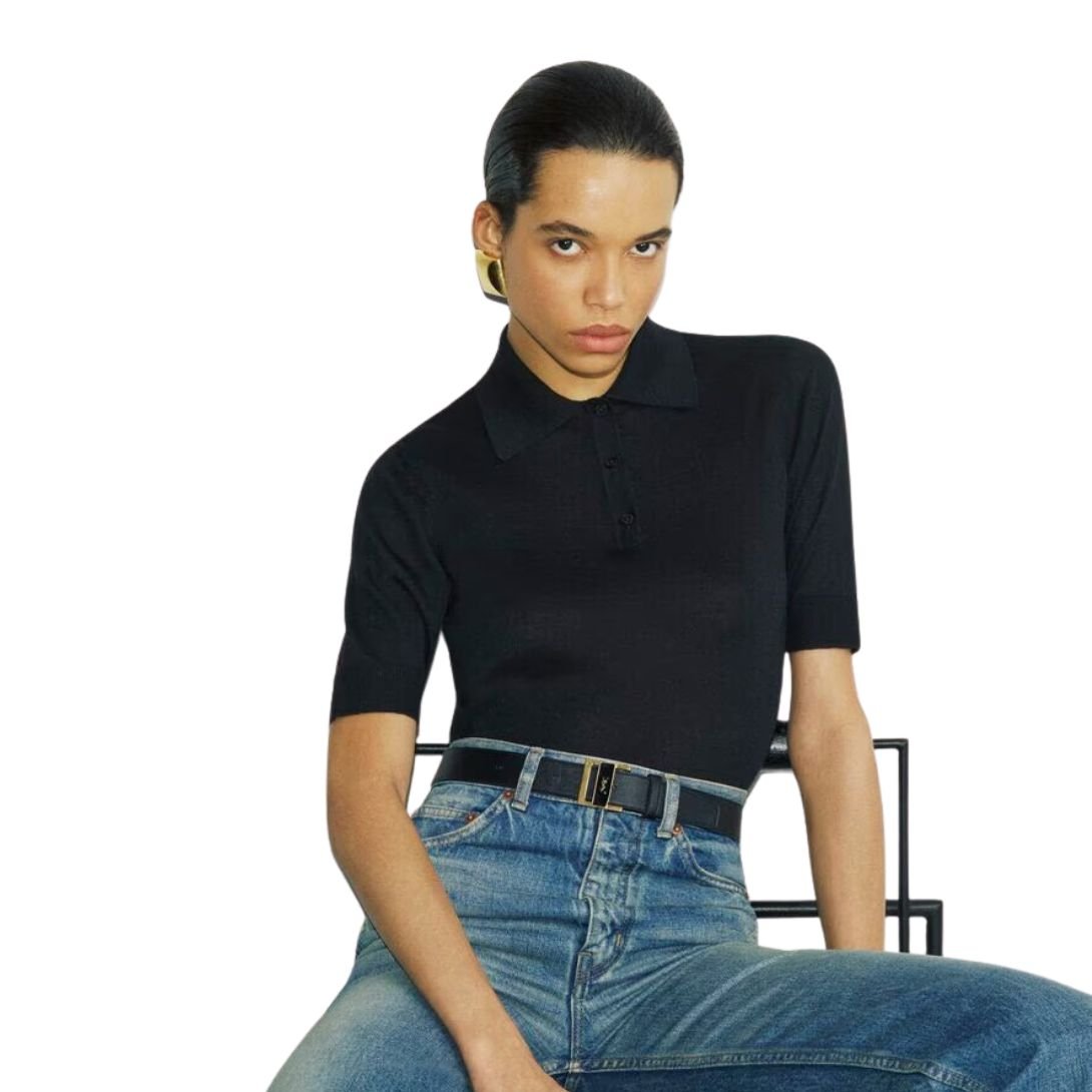 SAINT LAURENT POLO SHIRT CASSANDRE IN CASHMERE WOOL AND SILK