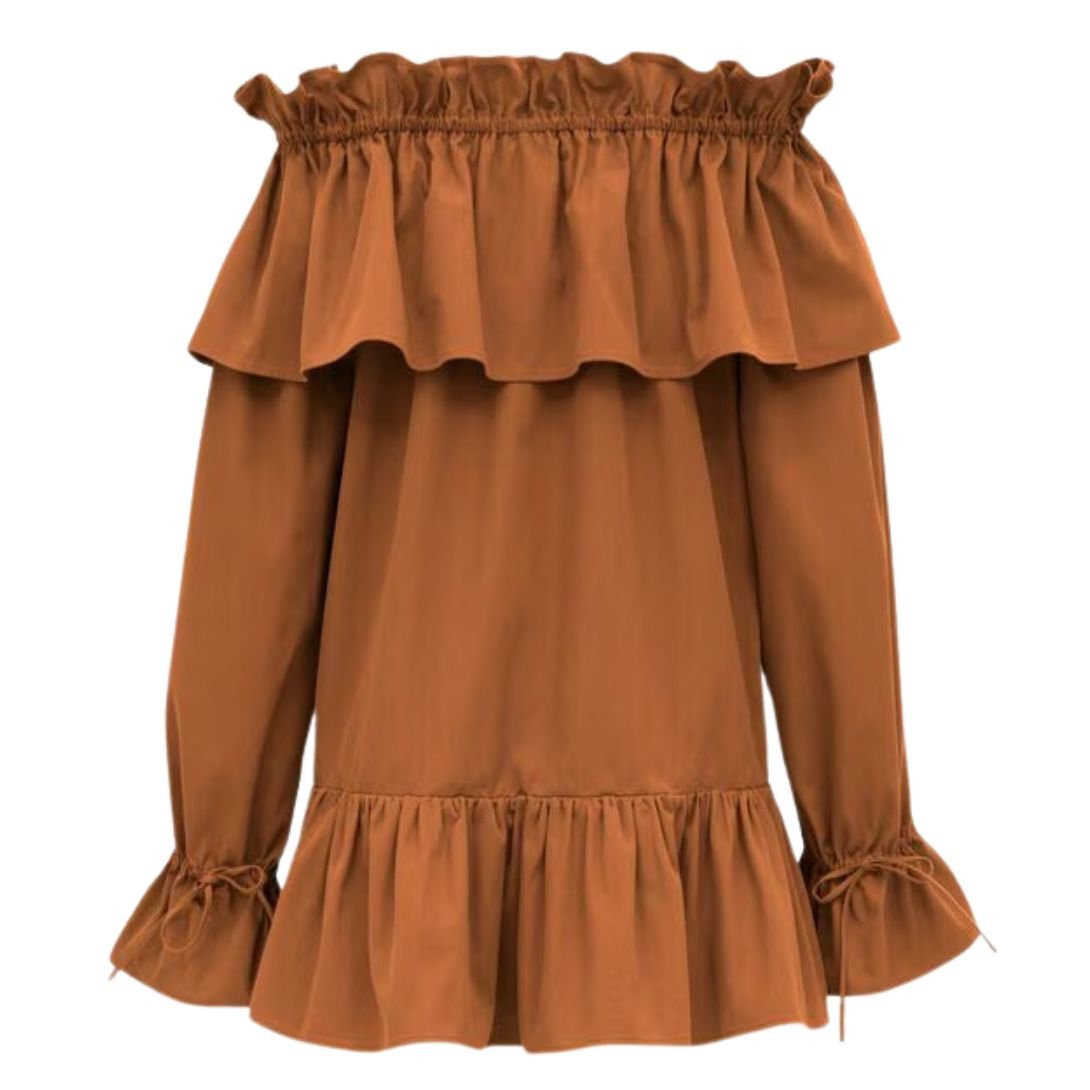 SAINT LAURENT RUFFLED DRESS IN COTTON TWILL