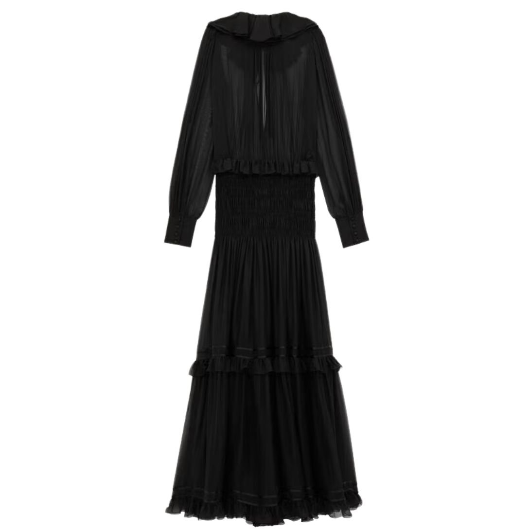 SAINT LAURENT RUFFLED DRESS IN SILK CREPE MUSLIN