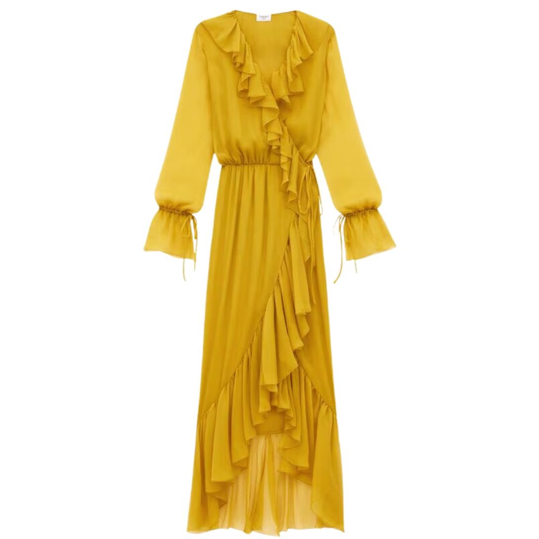 SAINT LAURENT RUFFLED DRESS IN SILK CHARMEUSE